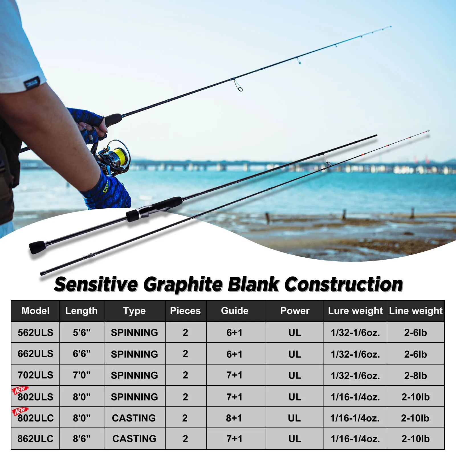 Goture Wavier UL Power Spinning Casting caña de pescar sólida fibra de carbono 2 piezas 1,65 M-2,59 M para pesca de trucha