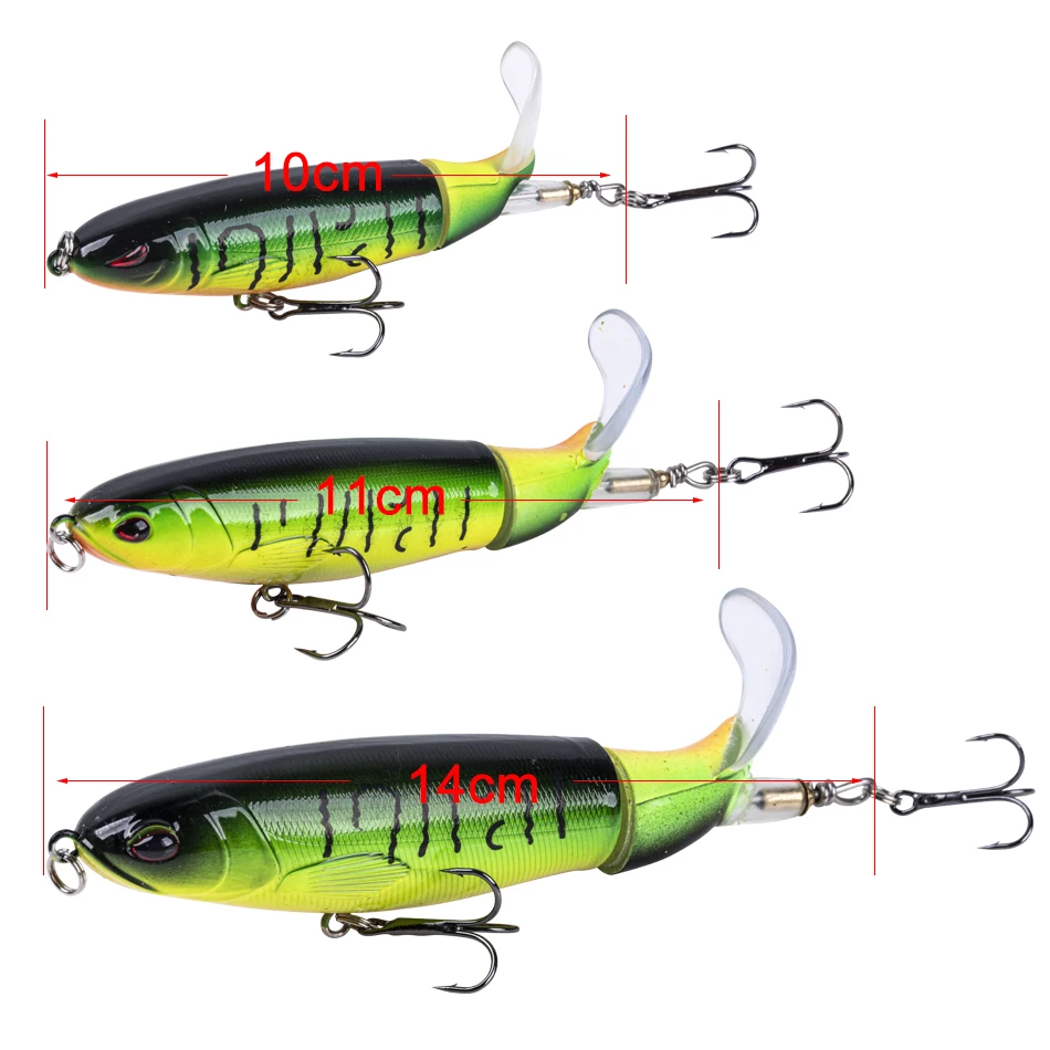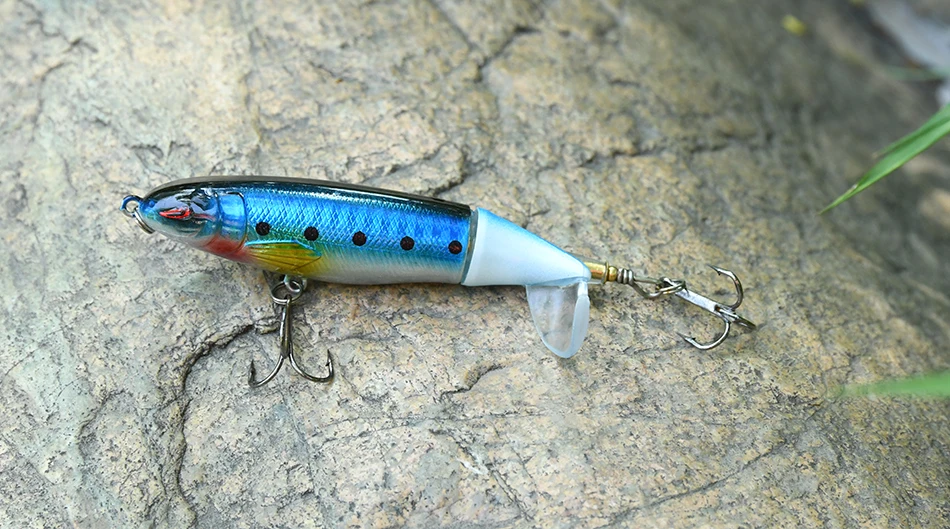 Hace que el extremo trasero gire creando una turbulencia en el agua similar a un cebo de zumbido, crea ruido