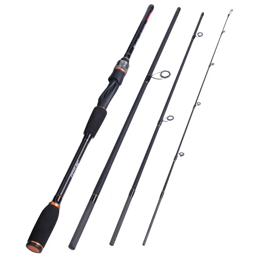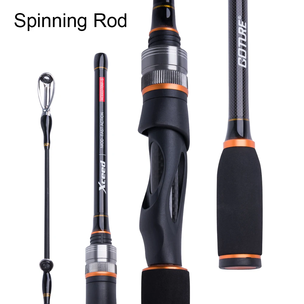 Goture Xceed-caña de pescar giratoria de fibra de carbono, 1,98 m, 2,4 m, M/MH, acción rápida, 4 secciones, aparejos de caña de señuelo