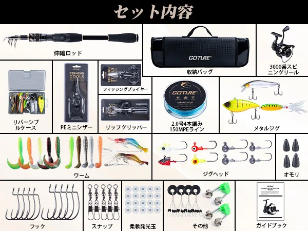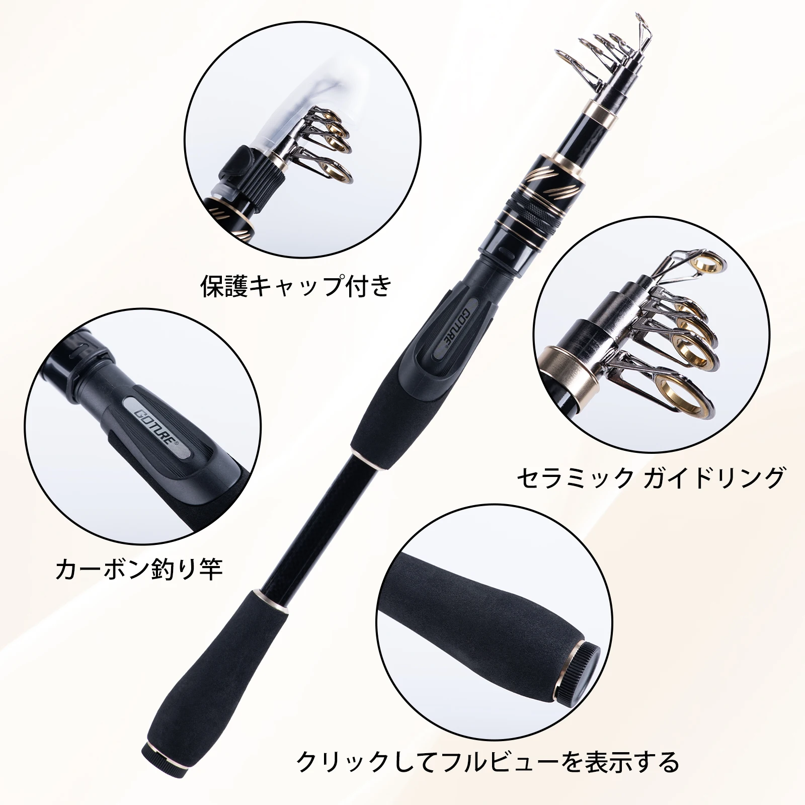 Goture1.8/2.1/2,4/2,7 m caña de fundición Combo varilla telescópica de alto carbono carrete de Baitcasting con línea de señuelo juego completo de equipo de pesca