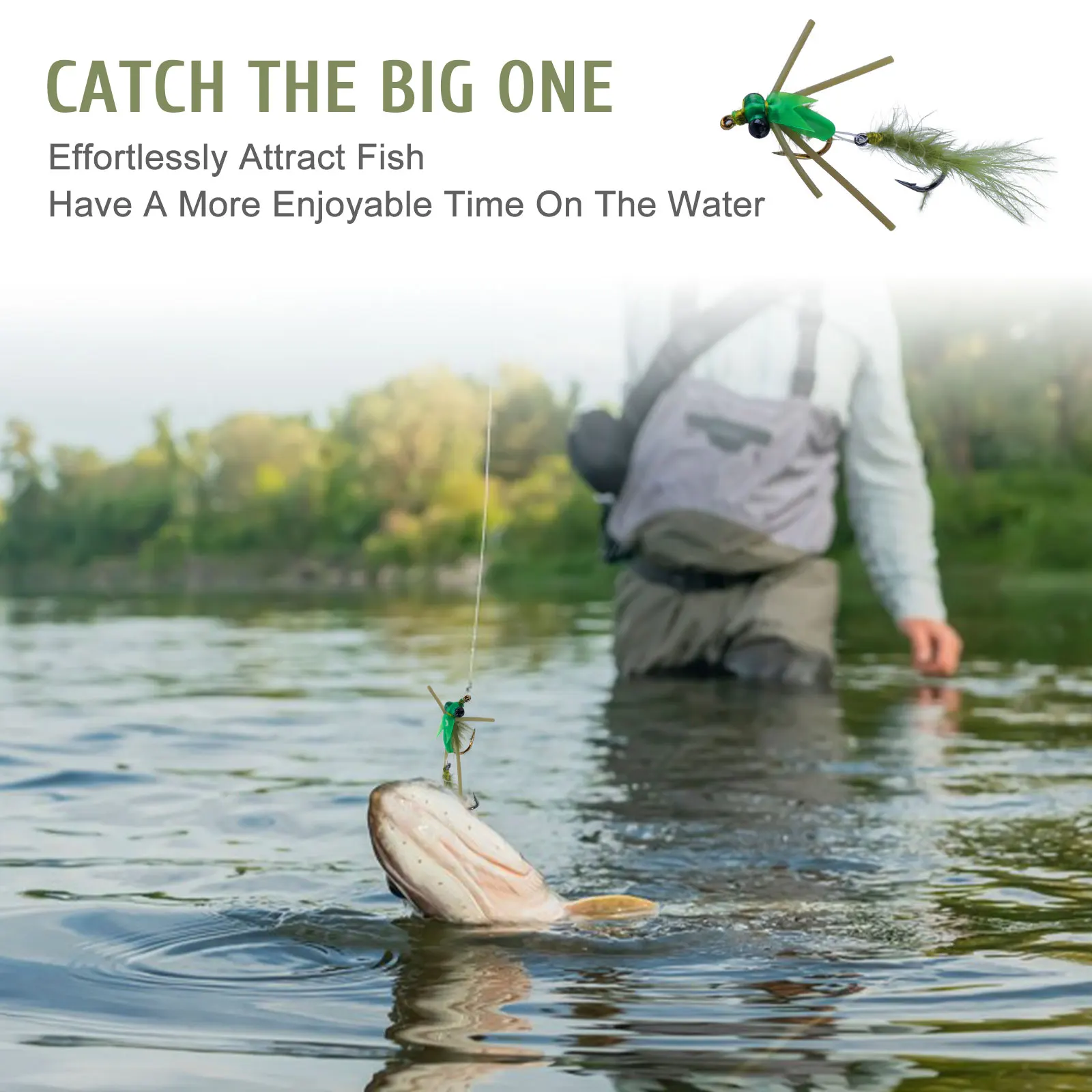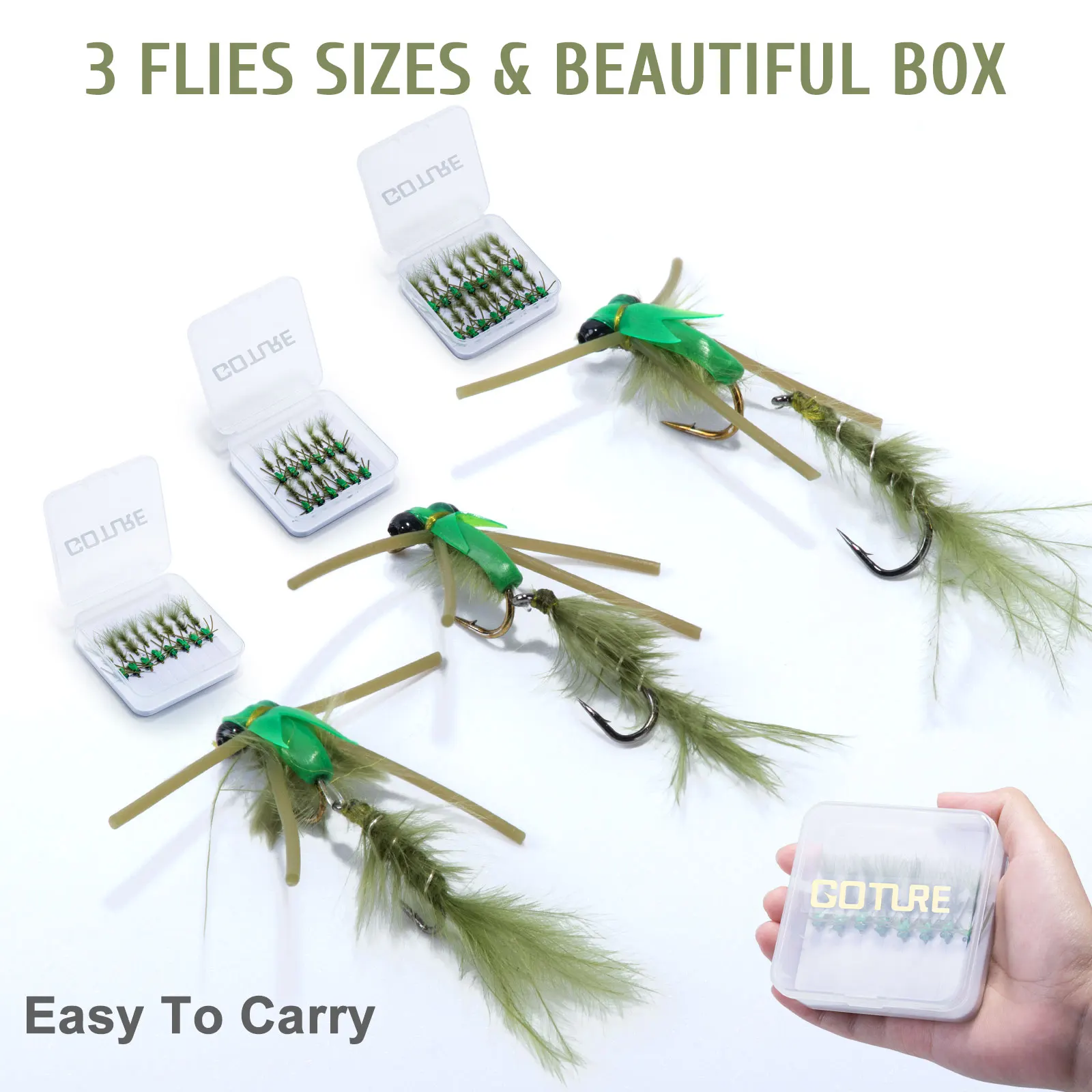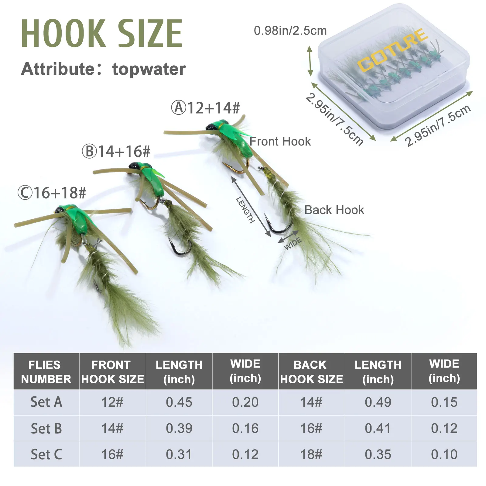 Goute 8-16 Uds moscas de pesca con mosca señuelo de pesca juego de anzuelos dobles 12 # 14 # 16 # 18 # Anzuelo para atar moscas, pesca de trucha y lubina, señuelo con caja
