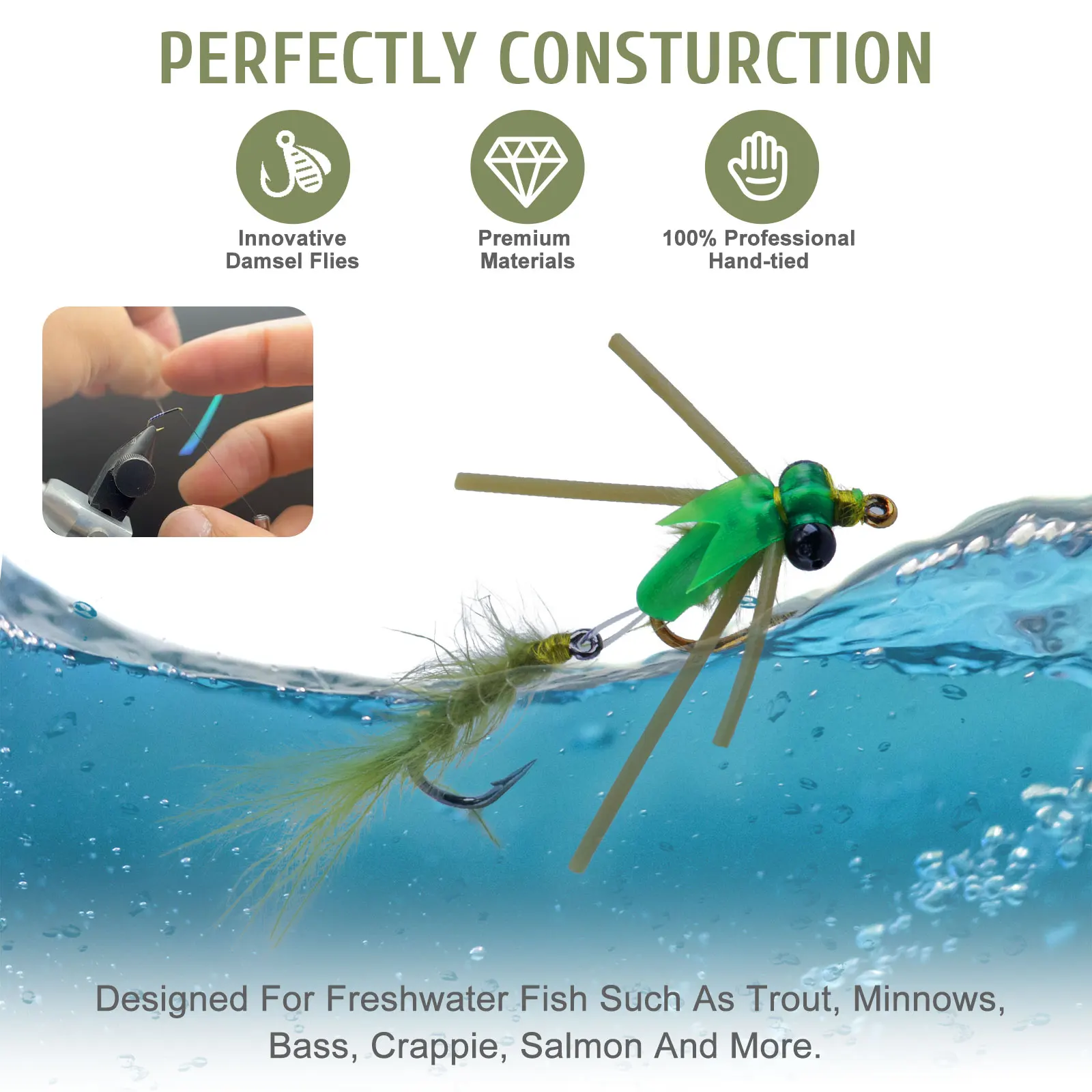 Goute 8-16 Uds moscas de pesca con mosca señuelo de pesca juego de anzuelos dobles 12 # 14 # 16 # 18 # Anzuelo para atar moscas, pesca de trucha y lubina, señuelo con caja