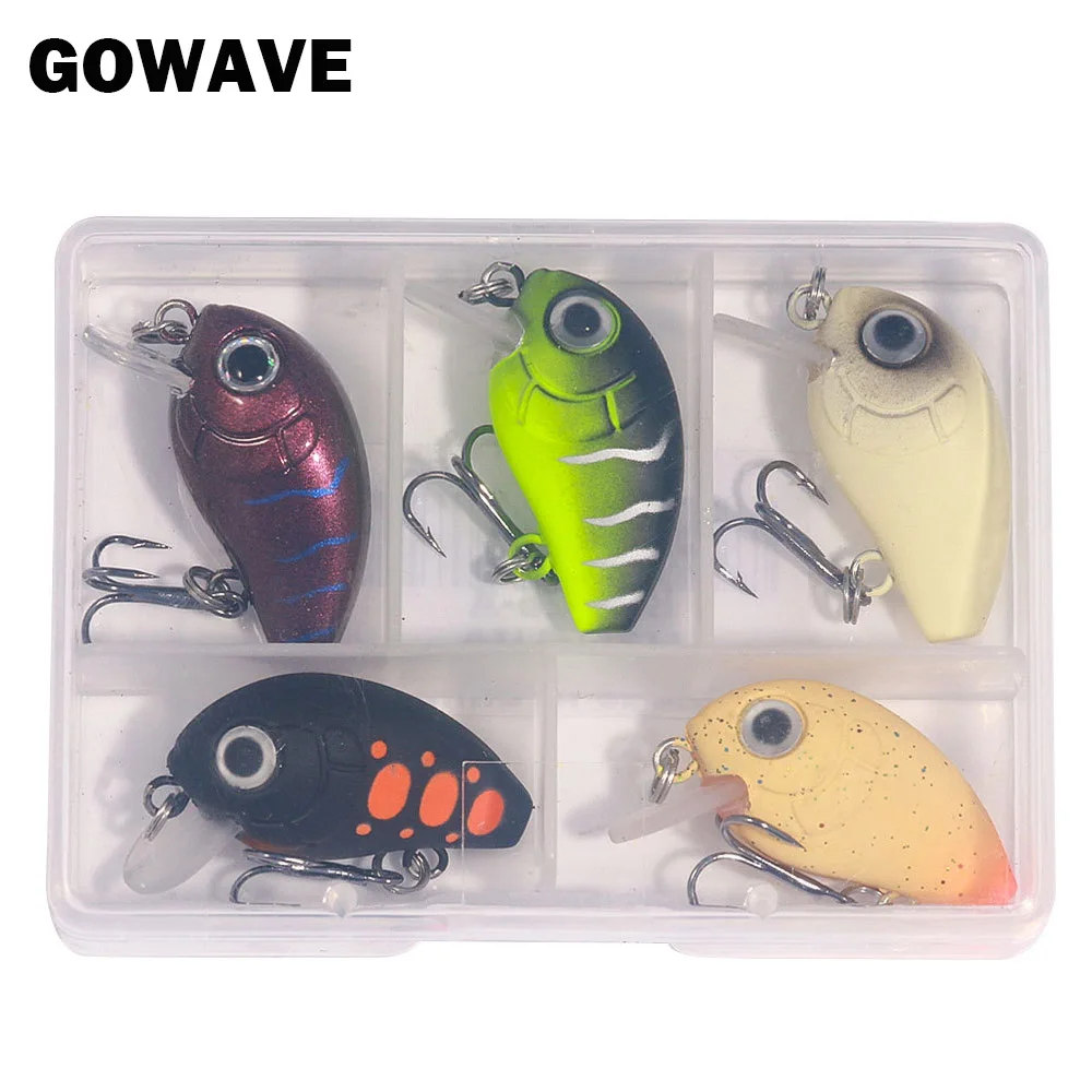 GOWAVE-Kit de Mini Crankbait, cebo duro Artificial para lubina, trucha, aparejos de Pesca, 1/5 piezas, 1,5g, 2g