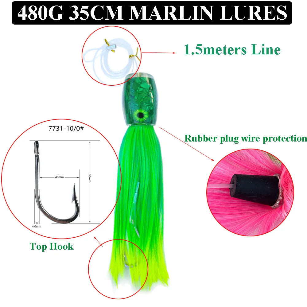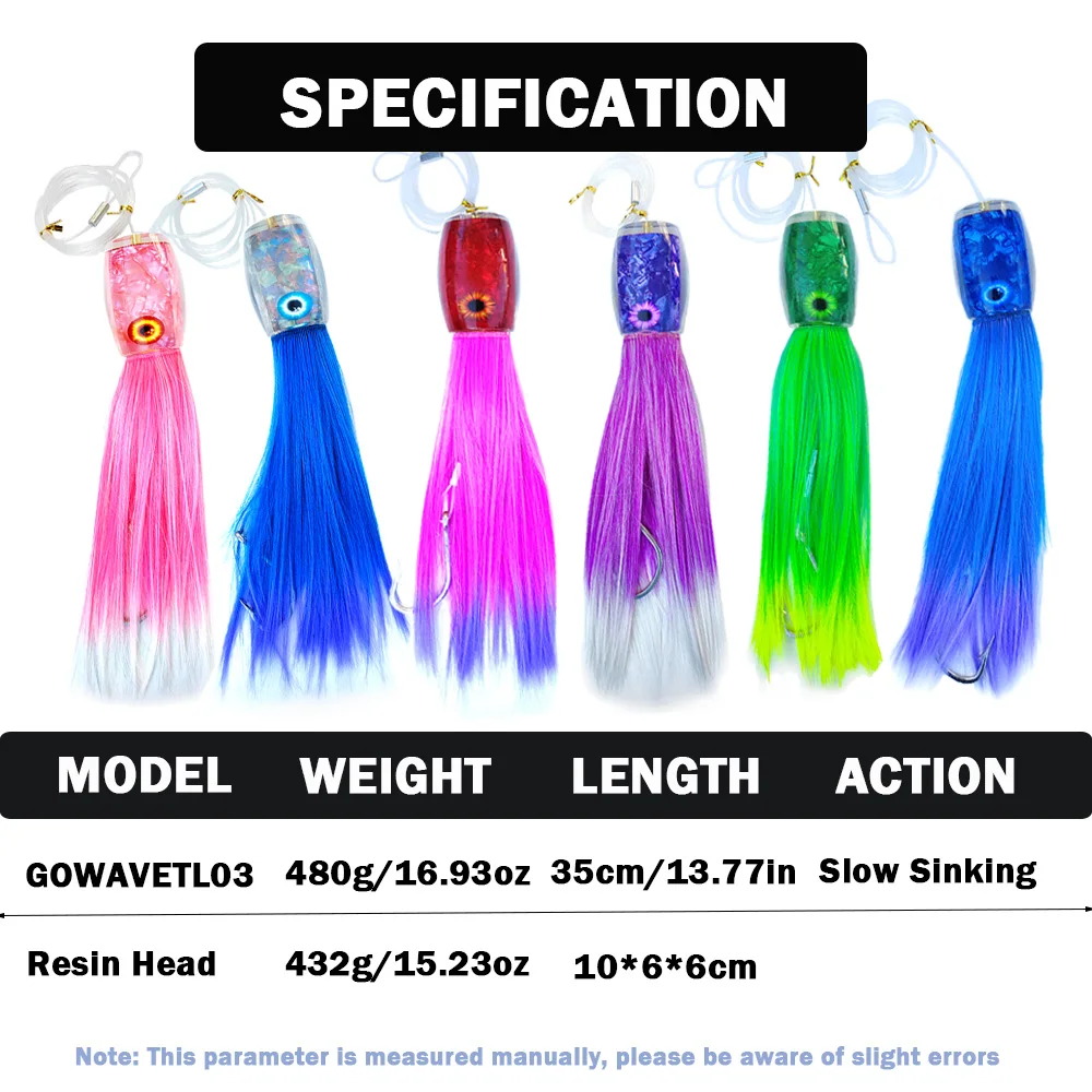 GOWAVE Señuelo de Vagero 35cm 480g Barco de aguas profundas Exterior pesado Cebo grande Señuelos de curricán de agua salada Mahi Wahoo Gran juego de pesca