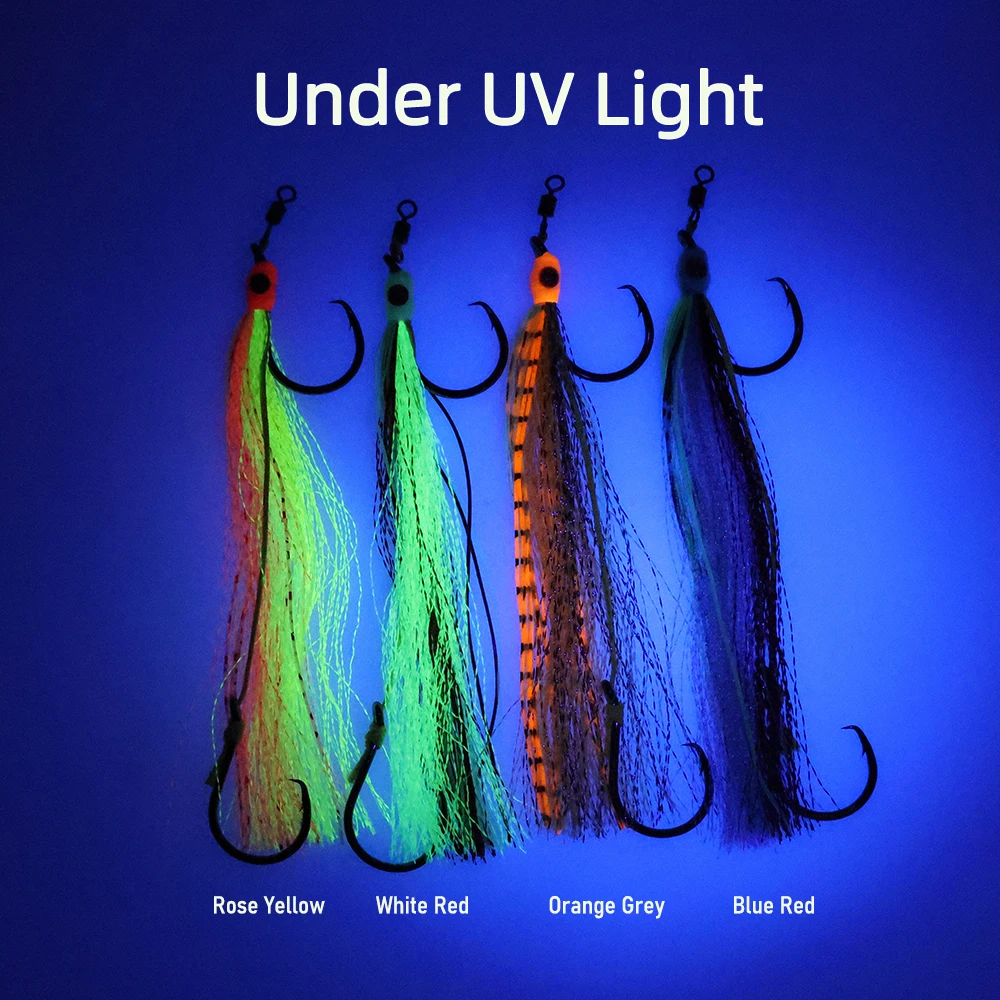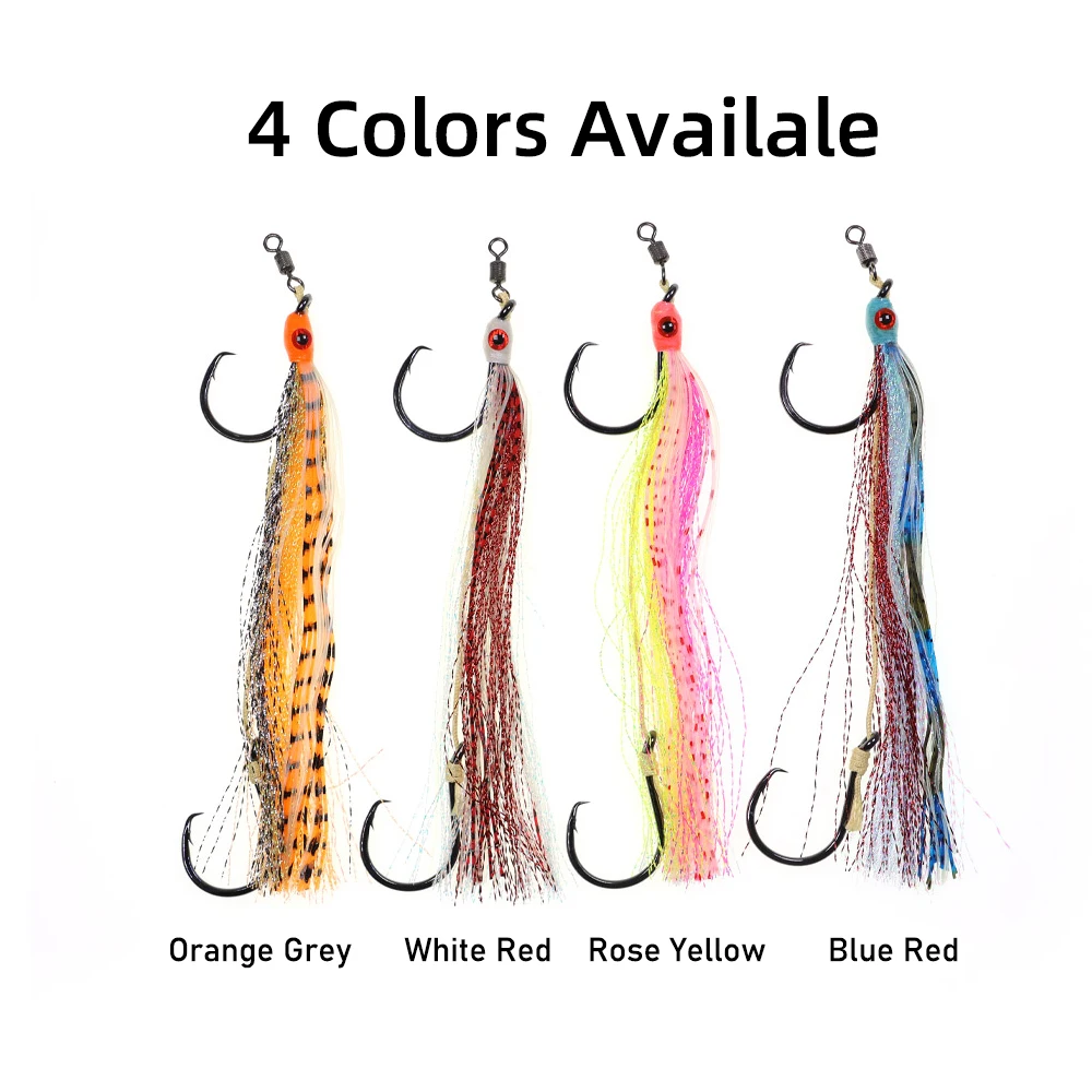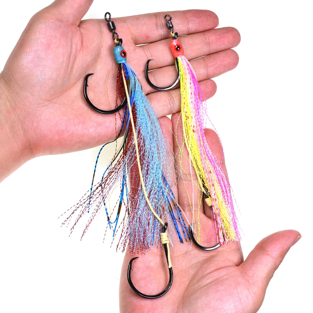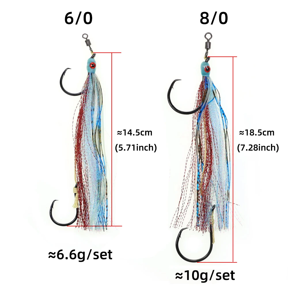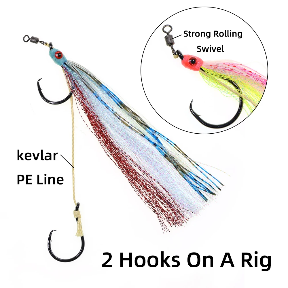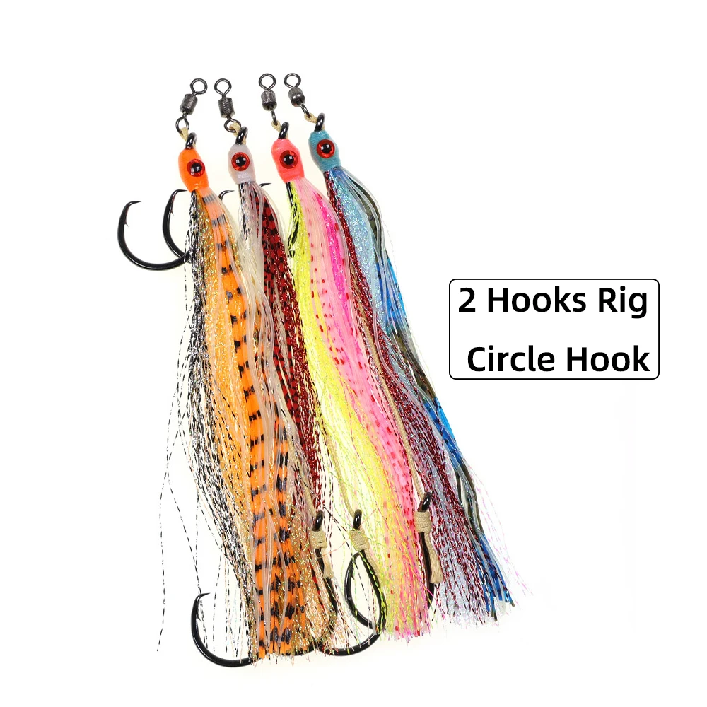2 uds pesca en agua salada juego grande 2 ganchos aparejo de gancho circular línea de PE fuerte ojos 3D faldas largas luminosas coloridas pesca pargo