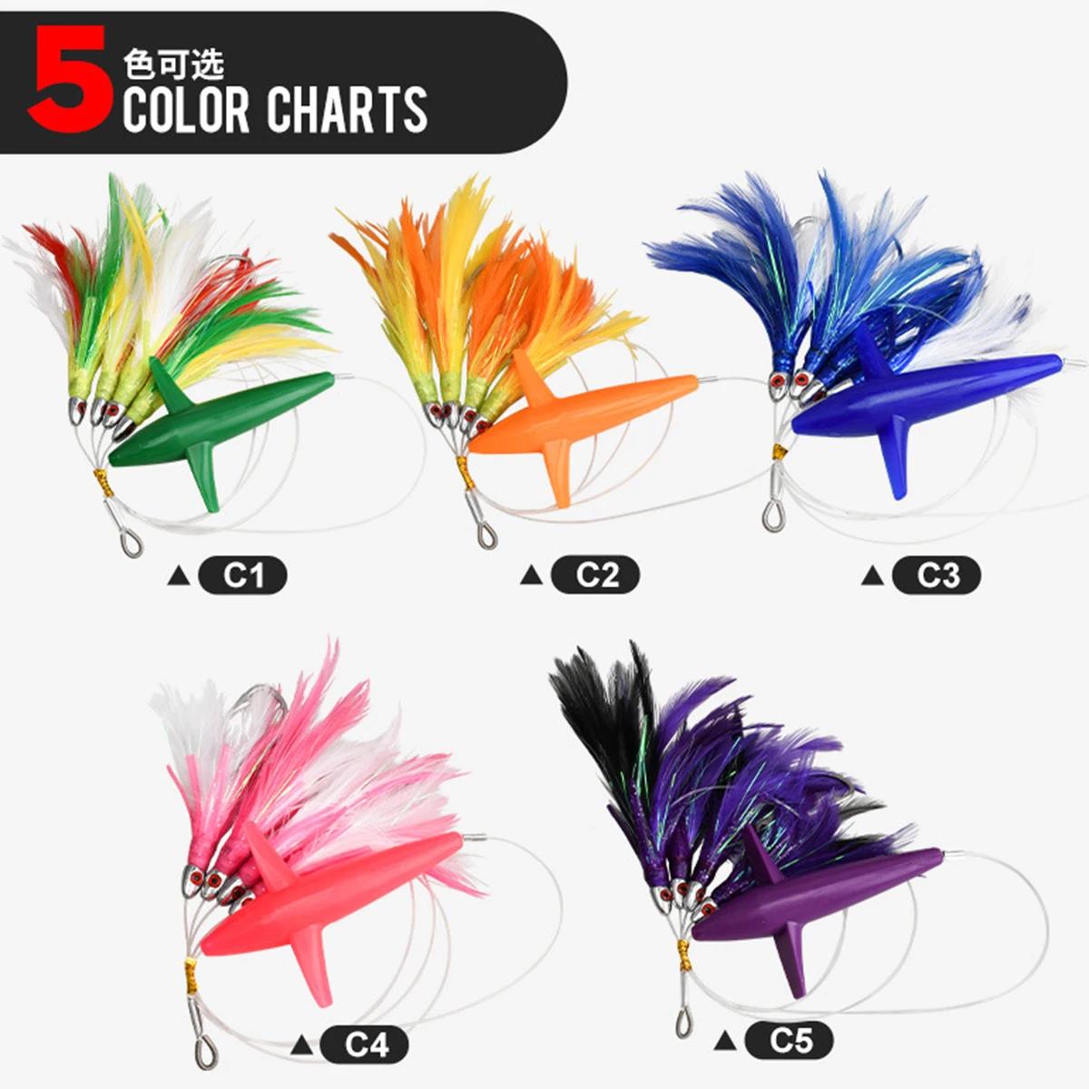 Gran juego de pesca Teaser aparejo pluma pájaro Trolling señuelo calamar atún Margarita cadena agua salada cebo Artificial Mahi Wahoo señuelo