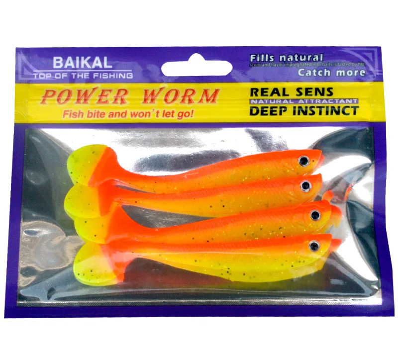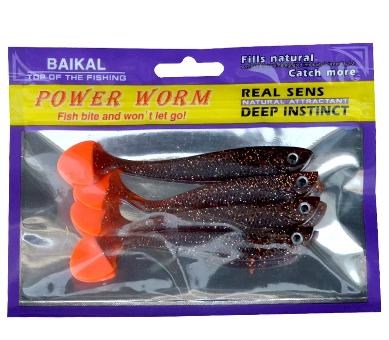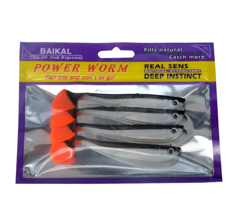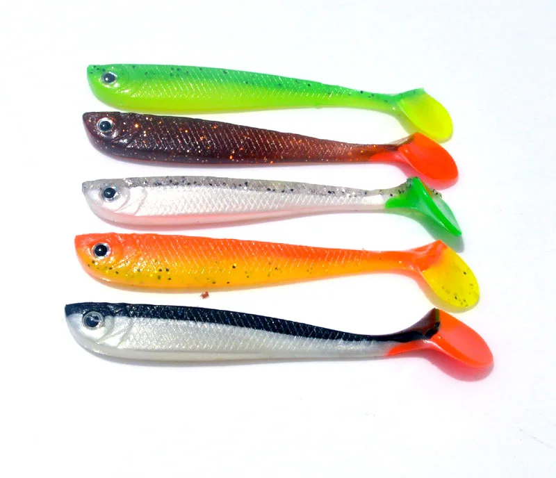 Gran oferta, cebo de señuelo suave, 4 unids/bolsa, señuelos artificiales de pesca hechos a mano, 11cm/6g, bota de cola en T de doble Color