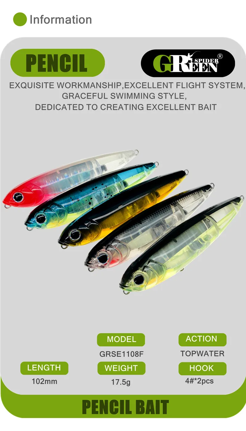 GREENSPIDER 102mm 17,5g Topwater lápiz superficie señuelo de pesca caminar el perro Artificial agua salada cebo duro lubina andador de plástico