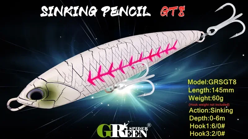 GREENSPIDER 145mm 60g Señuelos de Pesca de Mar hundimiento barco Trolling lápiz grande cebo Artificial para GT señuelo de pesca de lubina