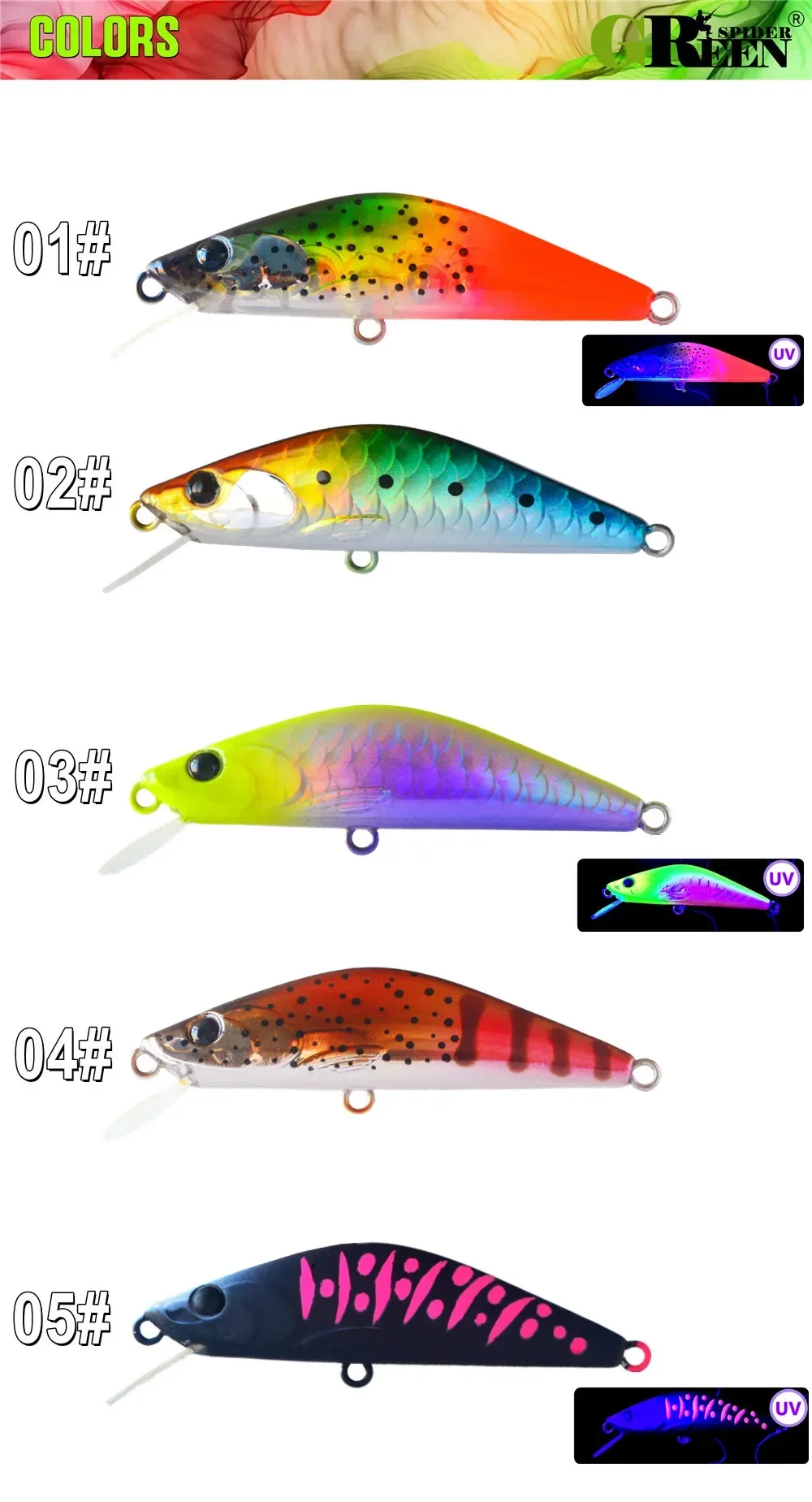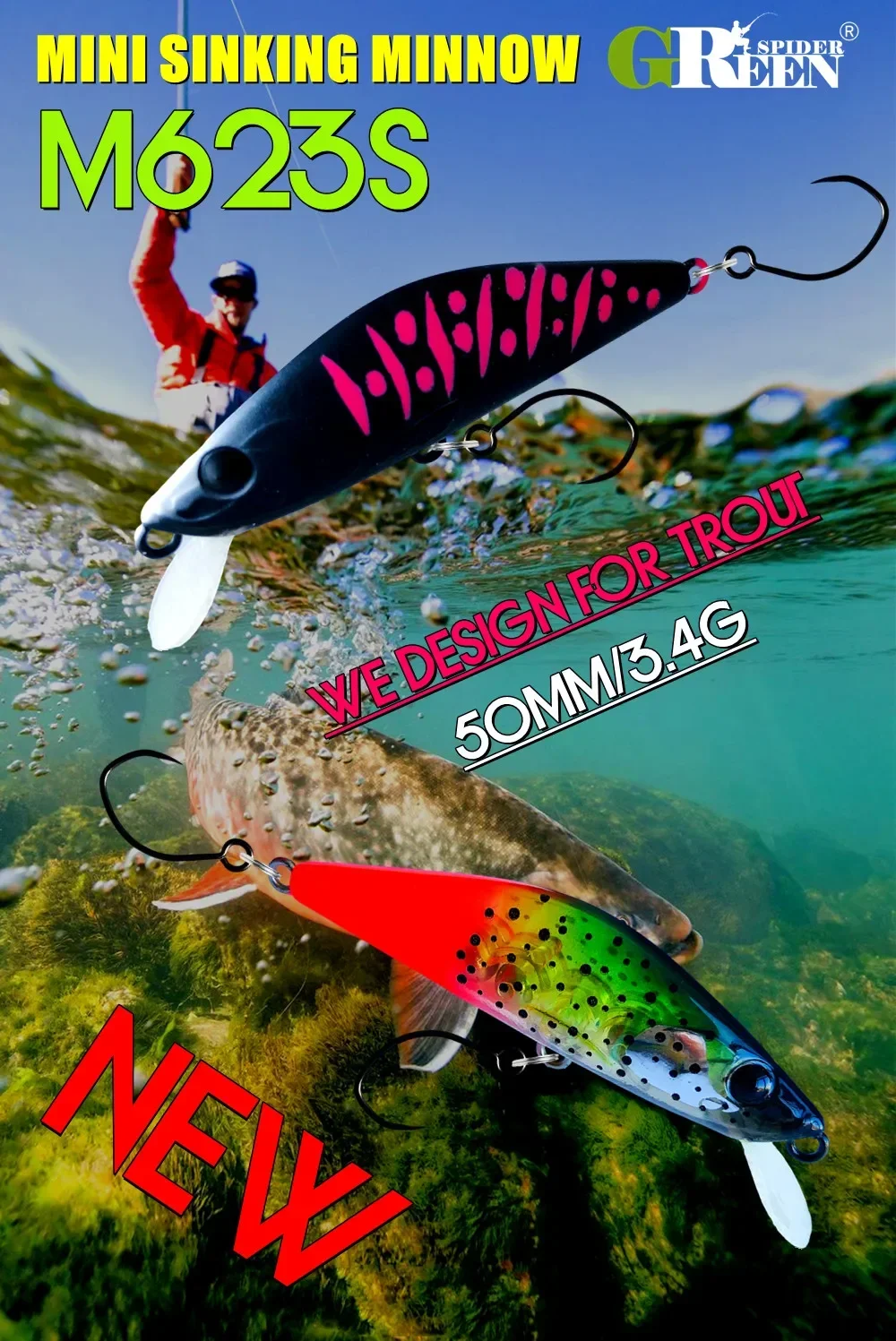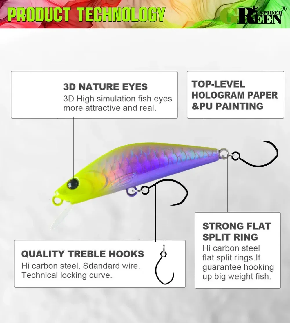 GREENSPIDER 50mm 3,4g Mini Señuelos de Pesca de pececillo que se hunden Jerkbaits Peche cebo Artificial Wobbler señuelo para pesca de carpa lubina y trucha