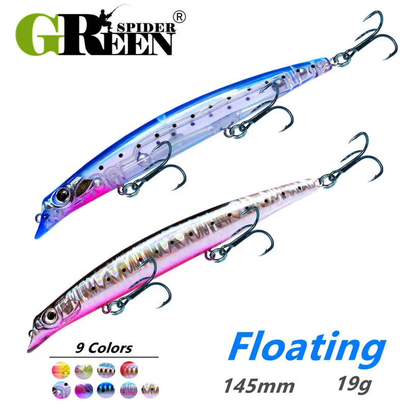 GREENSPIDER Jerkbait Wobblers 14,5 cm19g cebo duro flotante palo de pececillo lápiz Señuelos de pesca sistema de transferencia de peso fundición larga