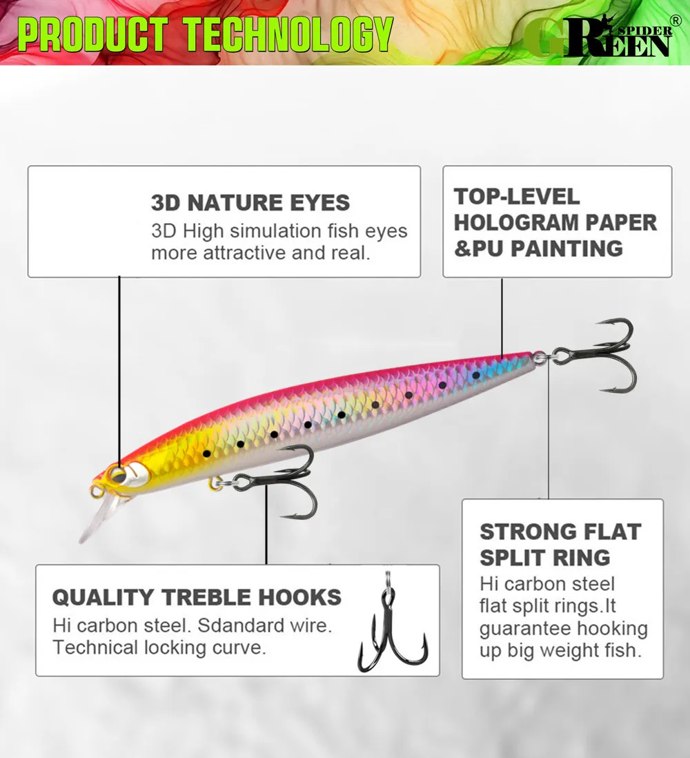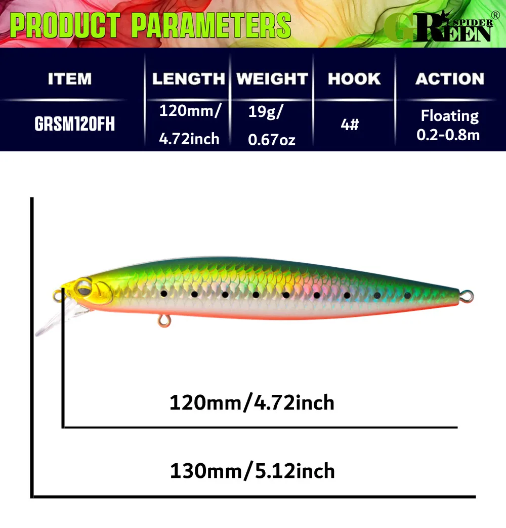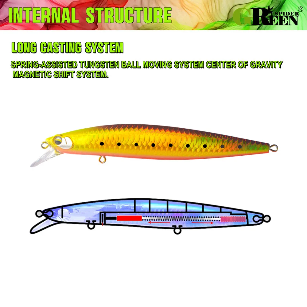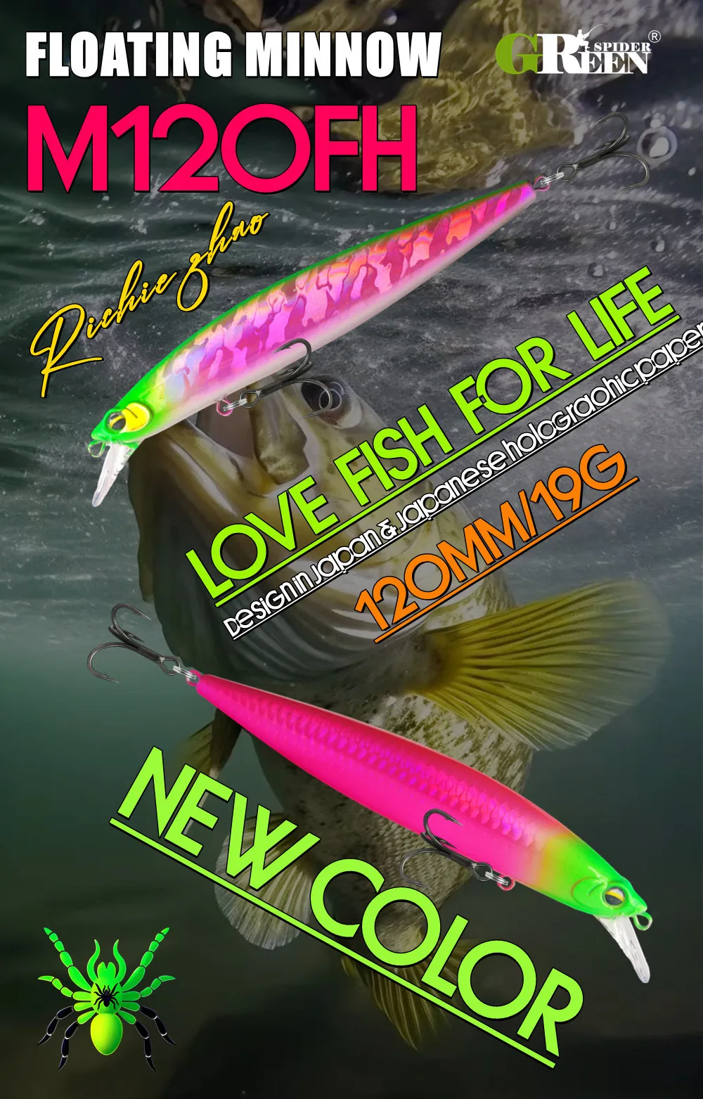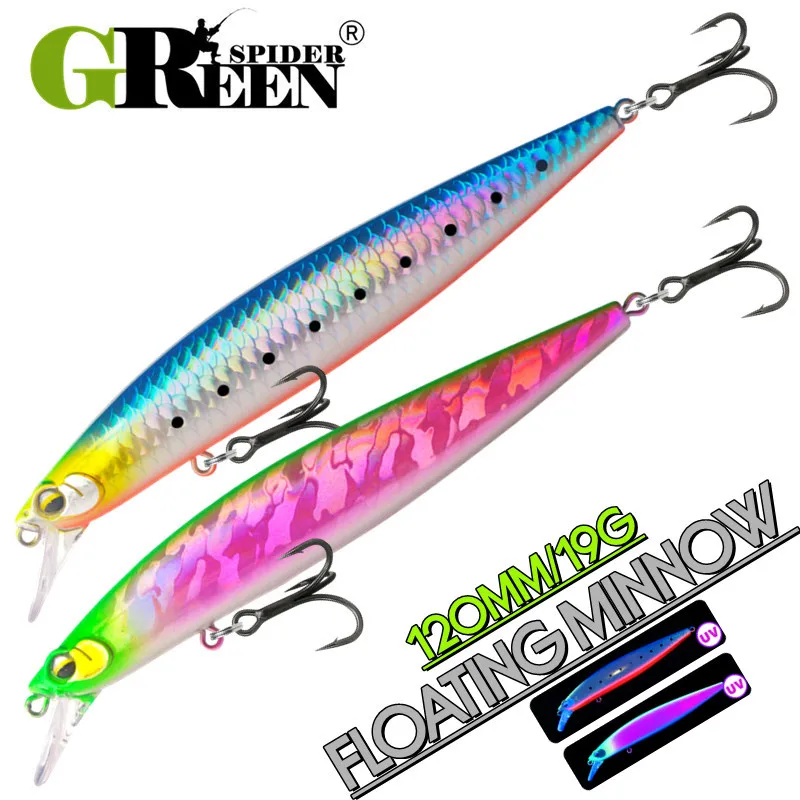 GREENSPIDER pececillo flotante 120mm 19g Señuelos de pesca de calidad profesional Wobblers flotantes duros Crankbait Bass
