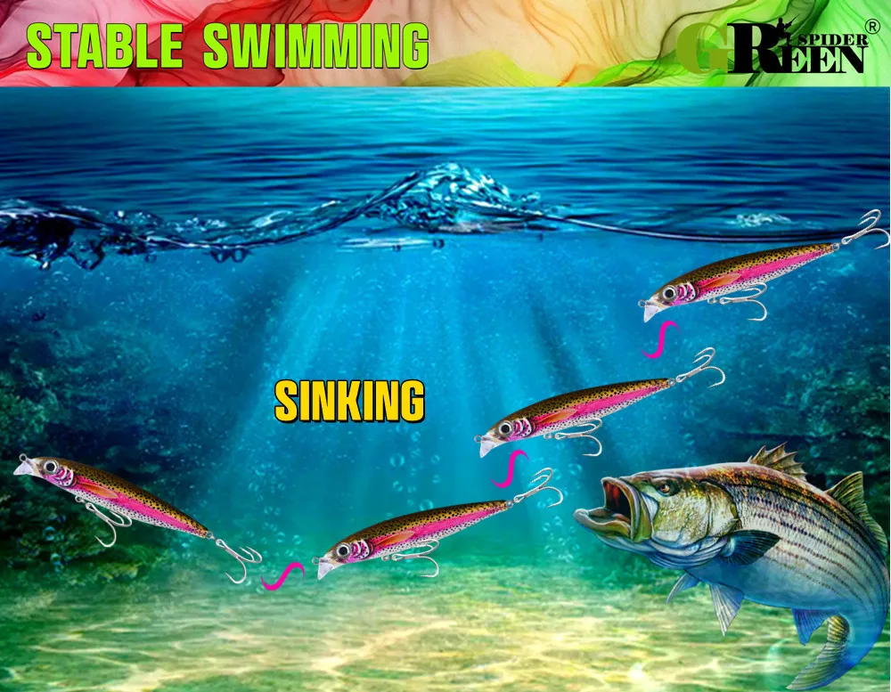 GREENSPIDER pececillo hundido 100mm 34g Wobbler Pesca Swimbait aparejos de fundición larga Lucio anzuelo señuelo de Pesca de Mar Jerkbait