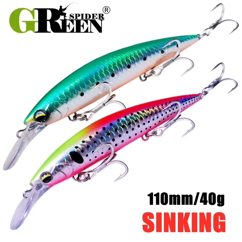 GREENSPIDER pececillo de peso pesado 110mm hundimiento Jerkbait señuelo de pesca de fundición larga agua salada lubina cebo Artificial de plástico aparejos