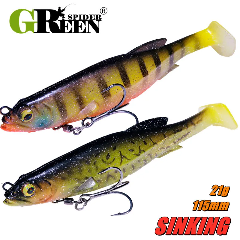 GREENSPIDER-señuelo Artificial para pesca en agua salada, cebo blando de 115mm y 21g, cola de paleta, para perca de lubina, Zander Glide
