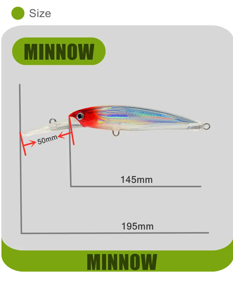 GREENSPIDER-señuelo de pececillo Artificial, cebo duro de hundimiento lento, ojos 3D, 145mm, 45g, 1 piezas