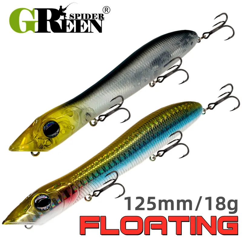 GREENSPIDER-señuelo de pesca de 125mm, 18g, Wobbler para pesca de lubina, cebos de superficie de agua salada