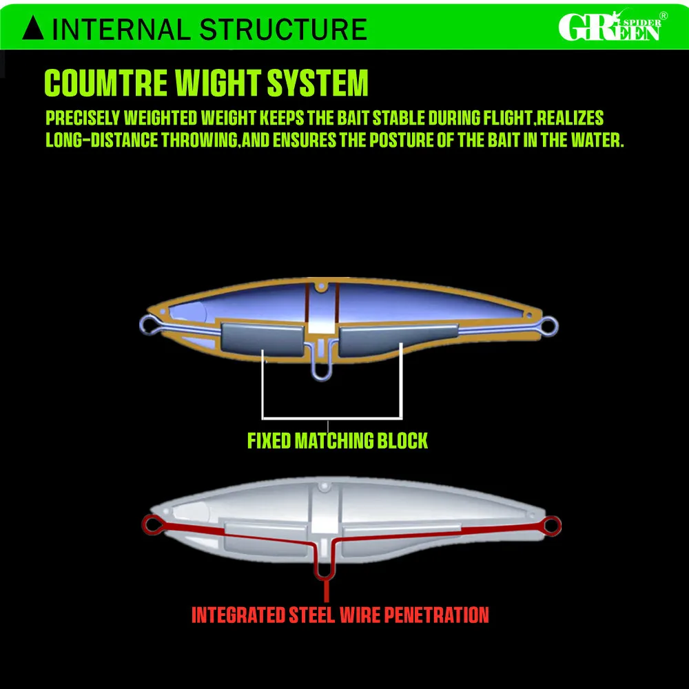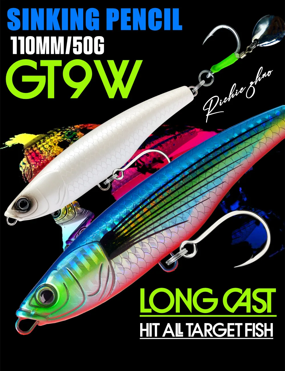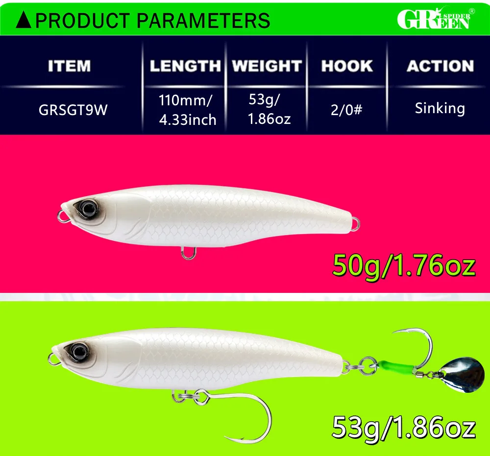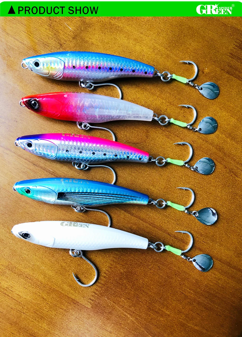 GREENSPIDER-señuelo de pesca en alta mar, cebo duro Artificial, lápiz de hundimiento, 110mm, 50g, resistente, 5X anzuelos