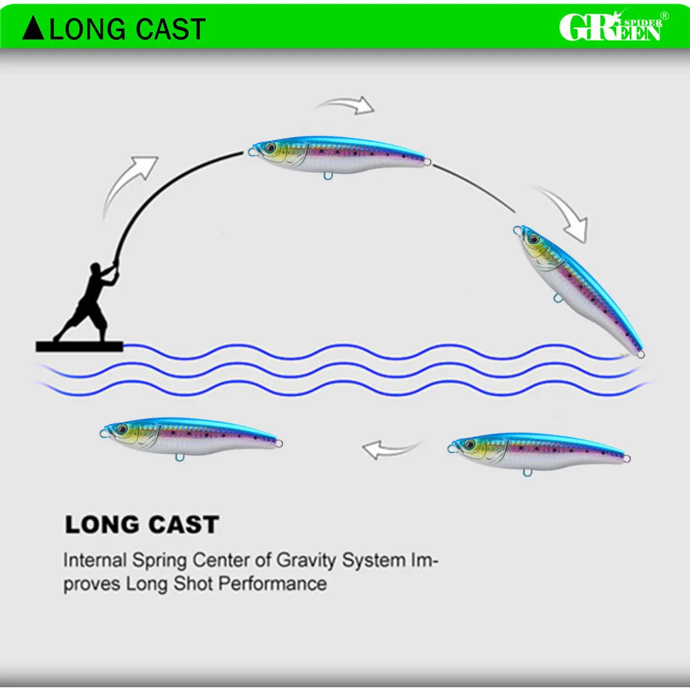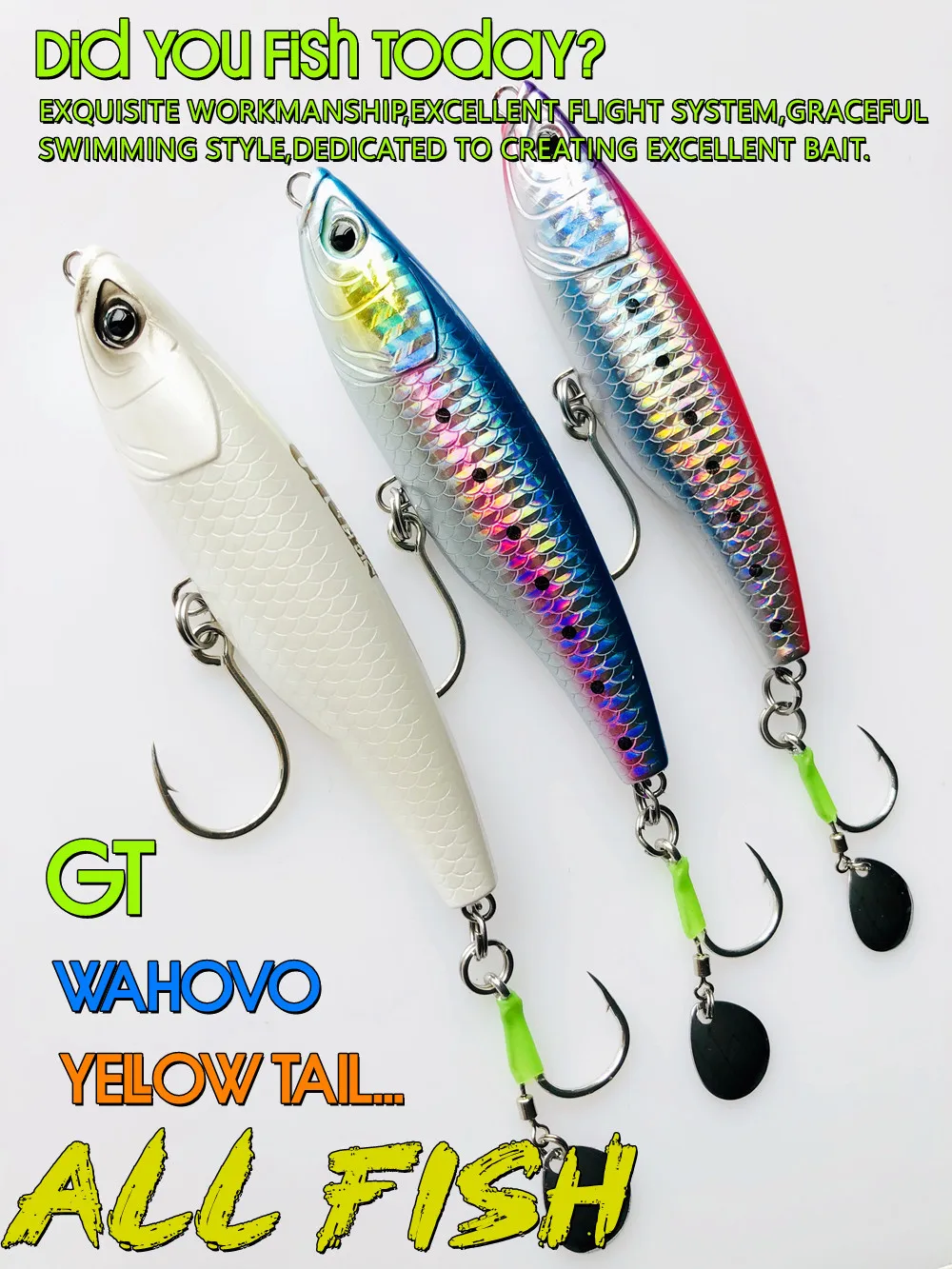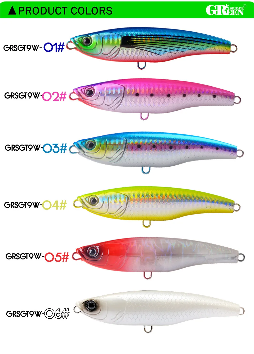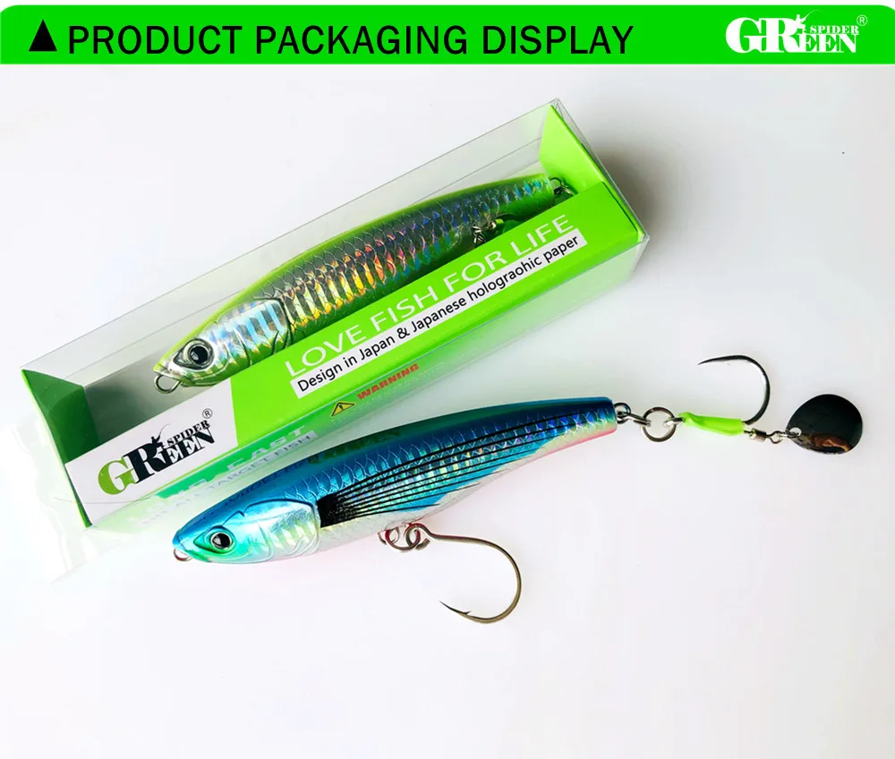 GREENSPIDER-señuelo de pesca en alta mar, cebo duro Artificial, lápiz de hundimiento, 110mm, 50g, resistente, 5X anzuelos