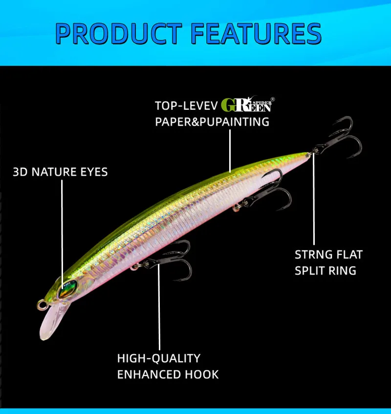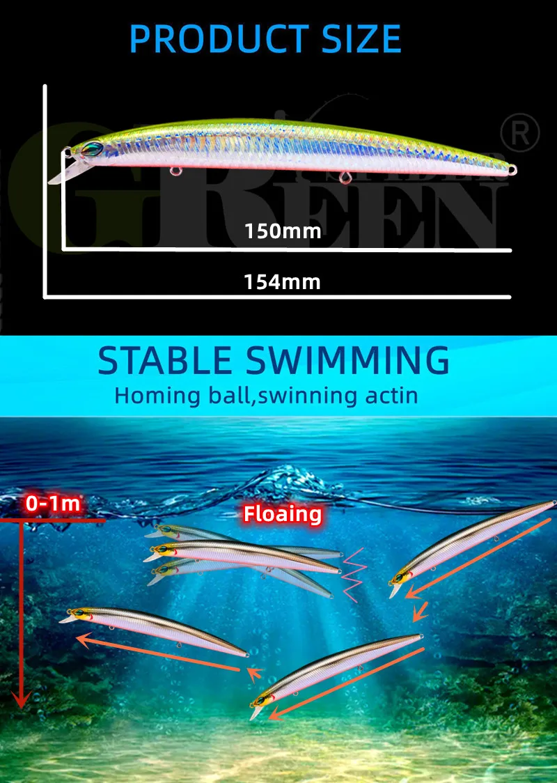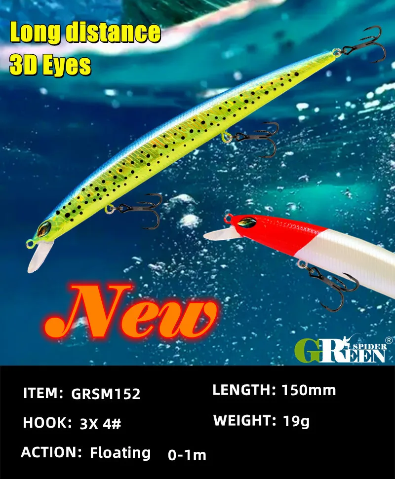 GREENSPIDER-señuelo de pesca flotante Minnow, Wobbler, 150mm, 19g, Crankbait Artificial, cebo de lubina, aparejos de pesca