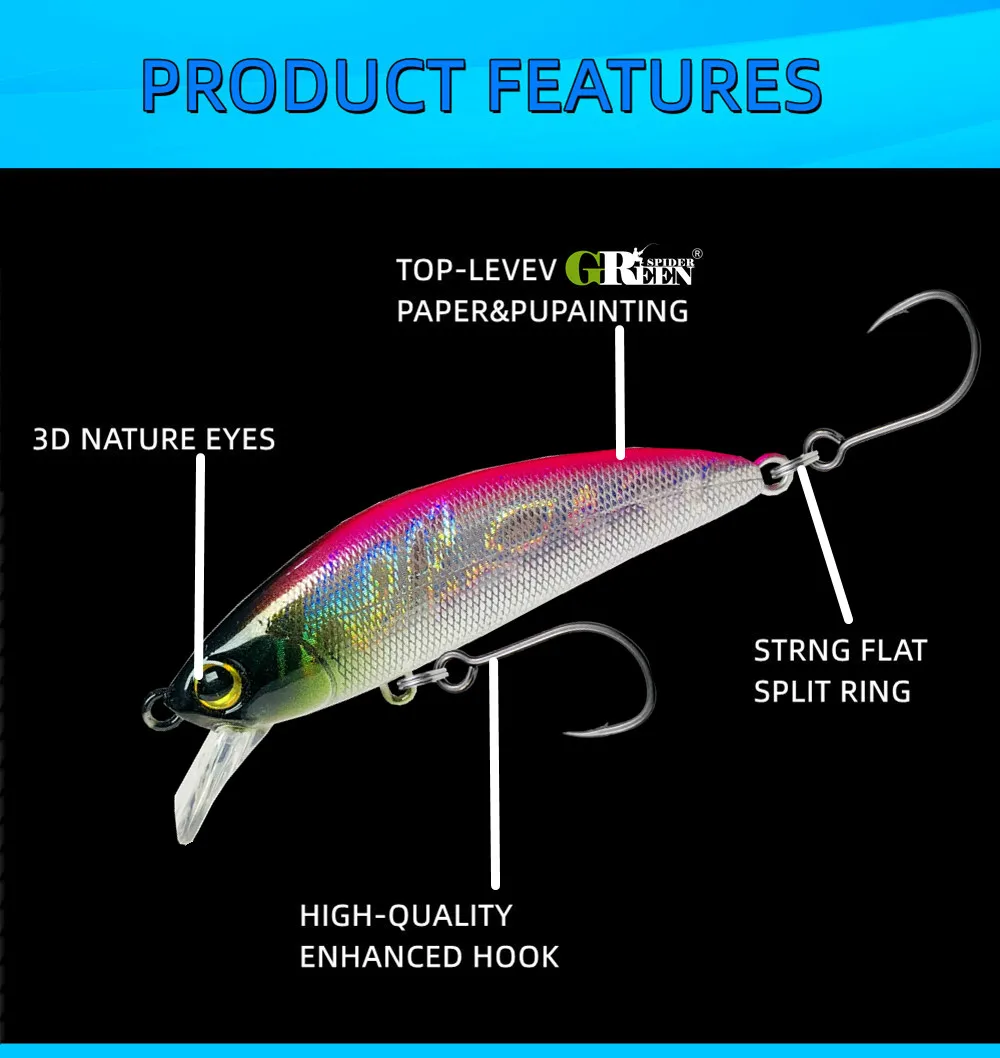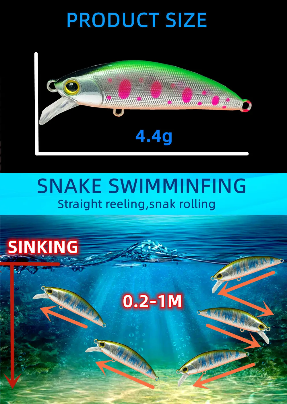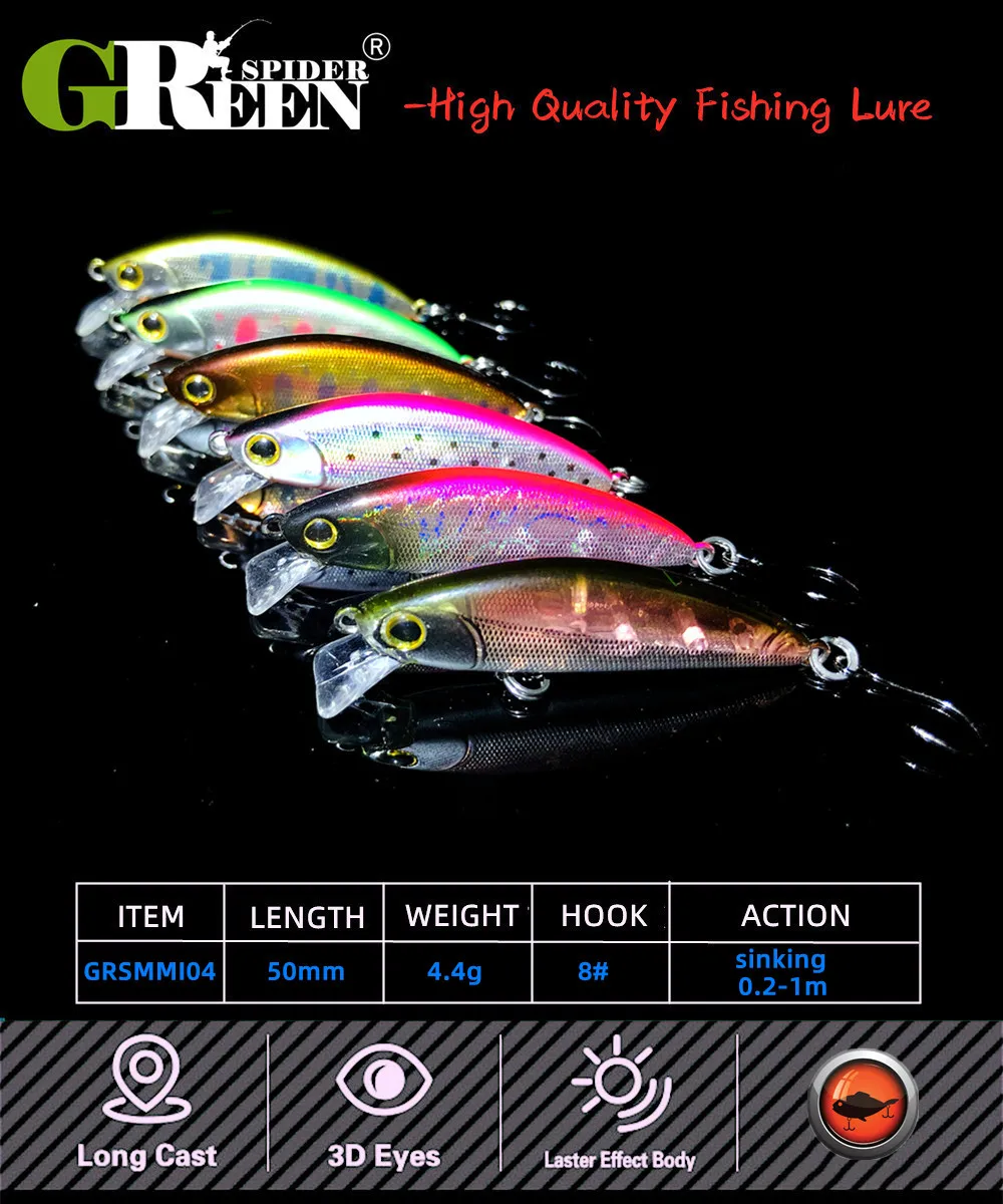 GREENSPIDER-señuelo de pesca de hundimiento, cebo duro Artificial para trucha, piscardo, perca, Jerkbait, Wobbler, 50mm, 4,4g, MI04