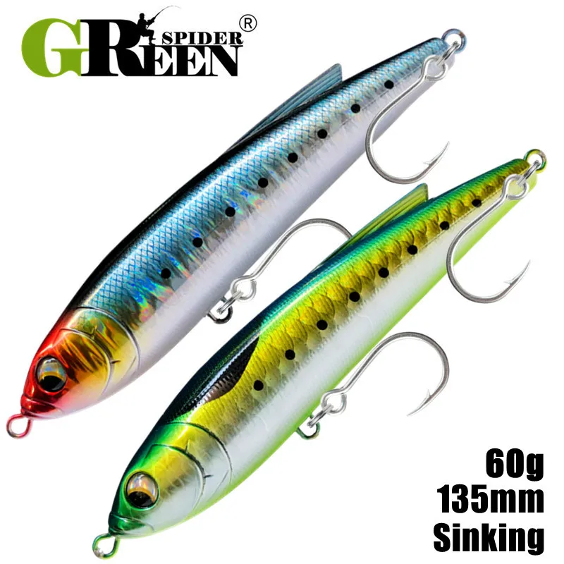 GREENSPIDER-señuelo de pesca de lápiz que se hunde, 135mm, 60g, Stickbait de fundición larga, Wobblers, cebo Artificial para lubina, trucha, señuelo de pesca de mar