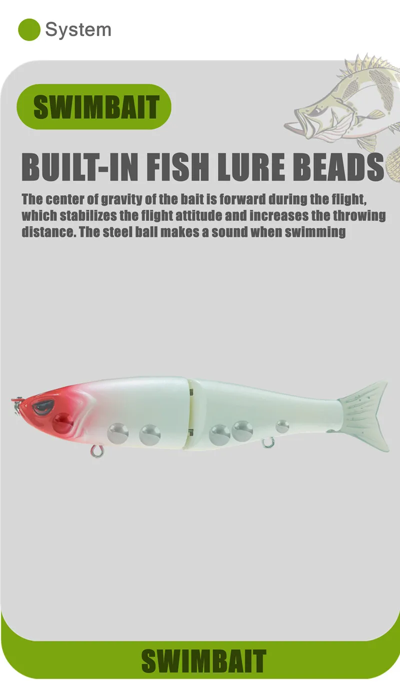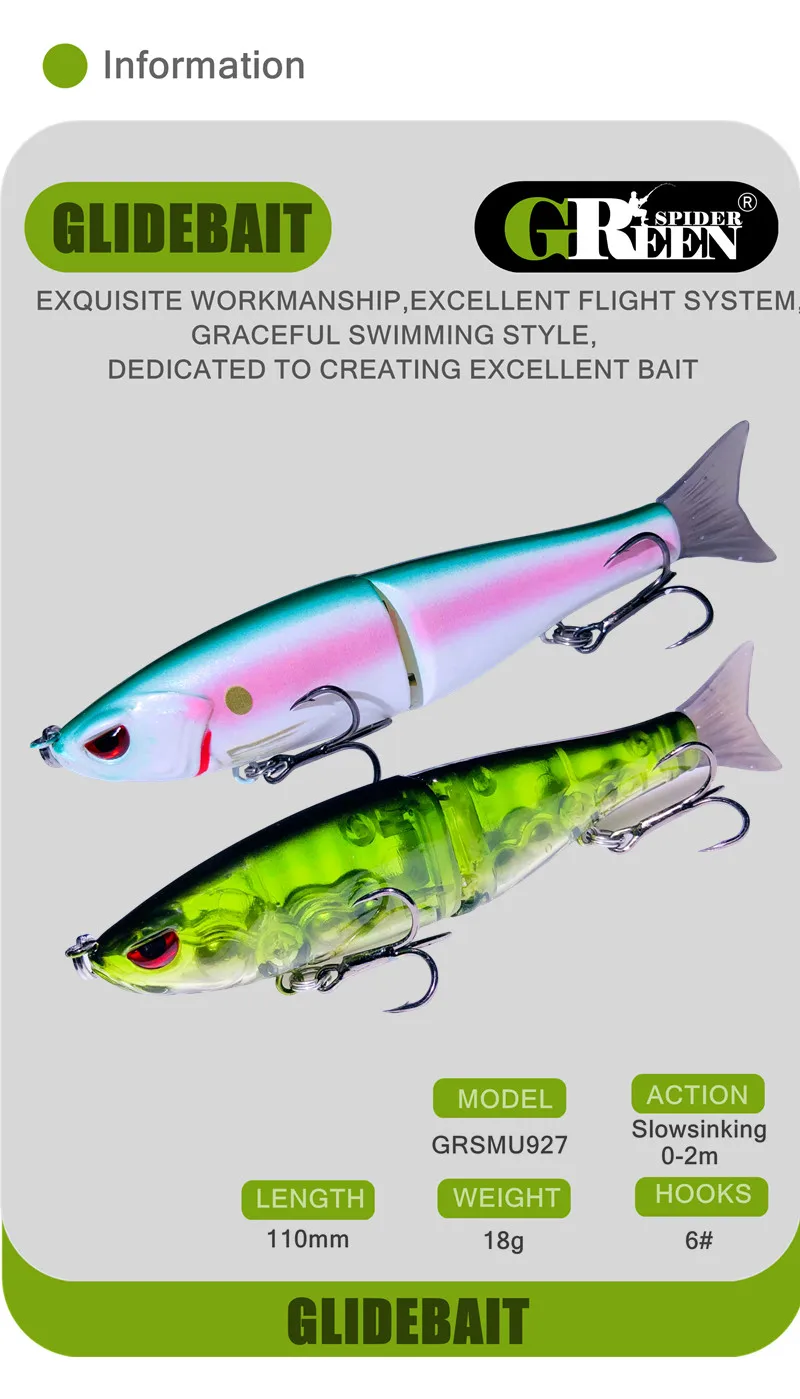GREENSPIDER-señuelo de pesca de lubina de un solo articulación, 110mm, 18g, Swimbait, cebos deslizantes para Lucio, salmón, trucha
