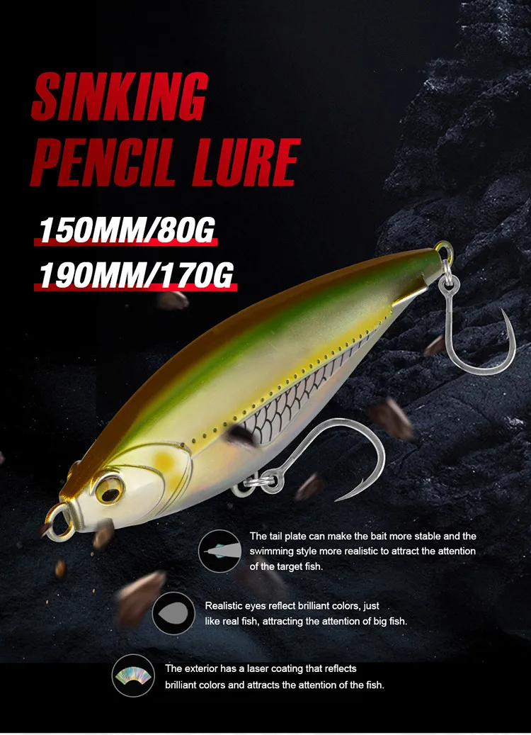 GREENSPIDER-señuelo de pesca Stickbait, cebo duro Artificial, 80g, 170g, hundimiento Variable, para agua salada