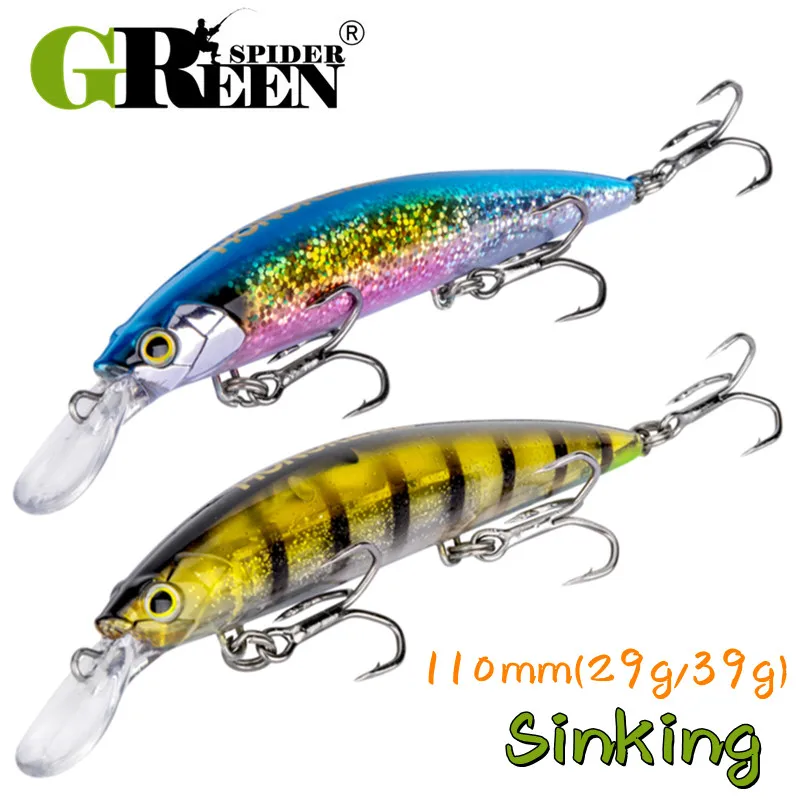 GREENSPIDER-señuelo de Pesca UV para agua salada, señuelo de piscardo pesado de 110mm/29g/39g, hundimiento, de fundición larga, Wobblers rodantes, Manivela para lubina