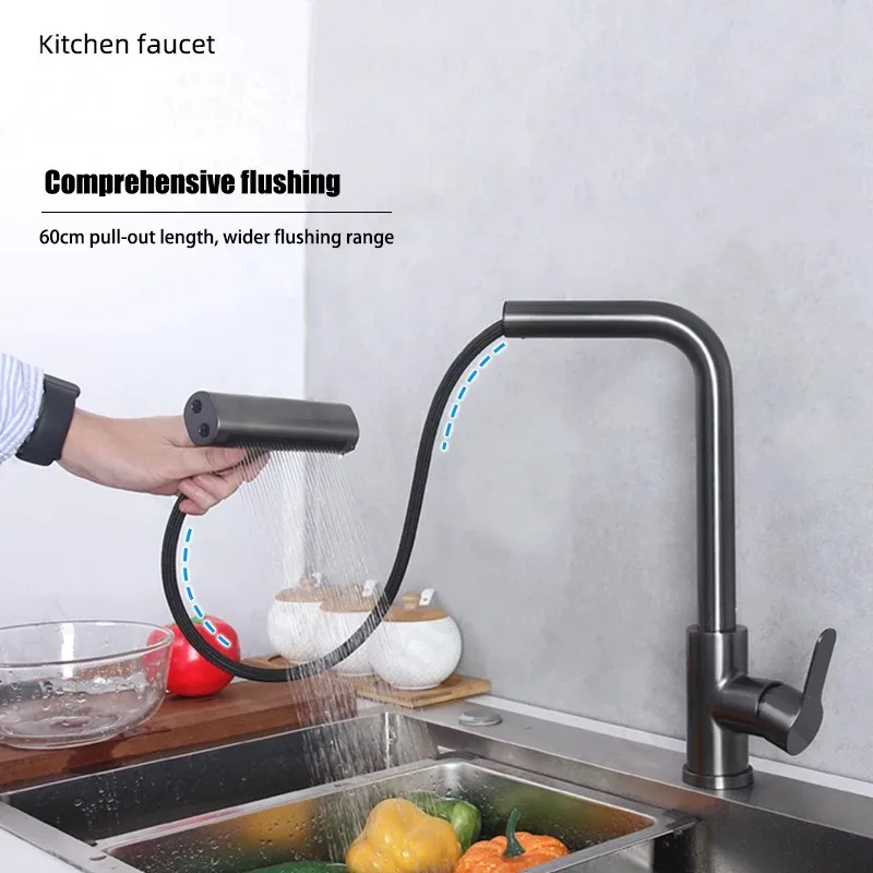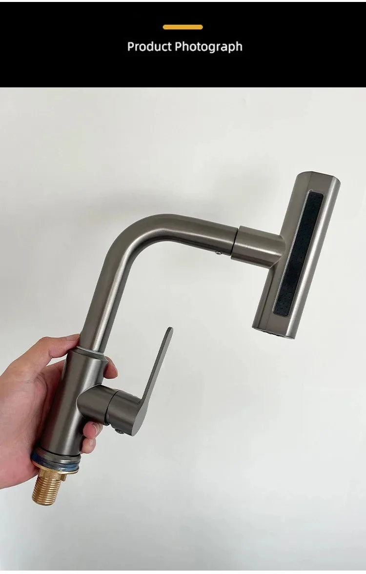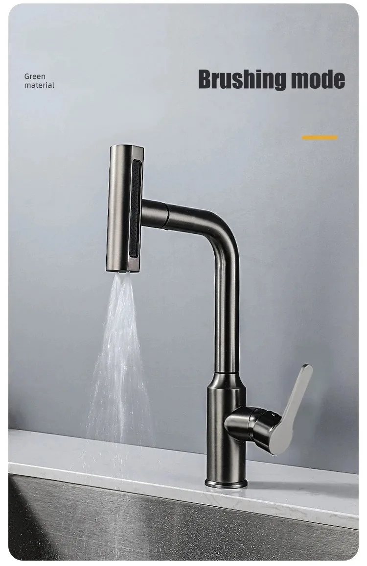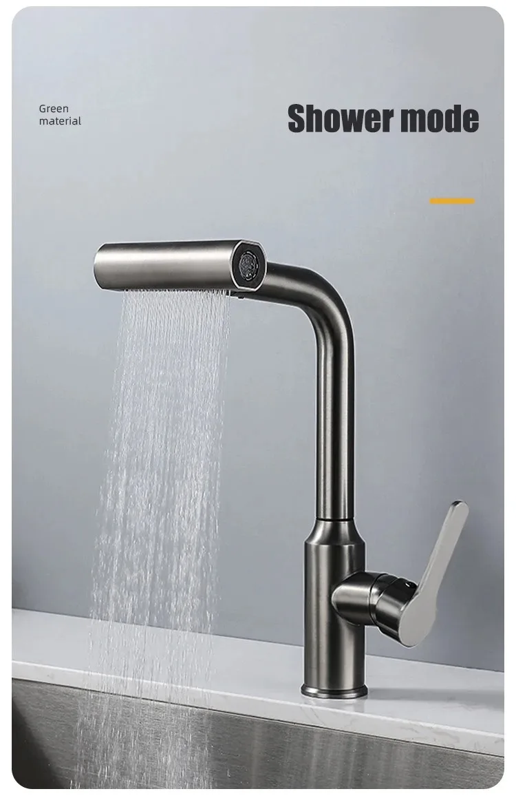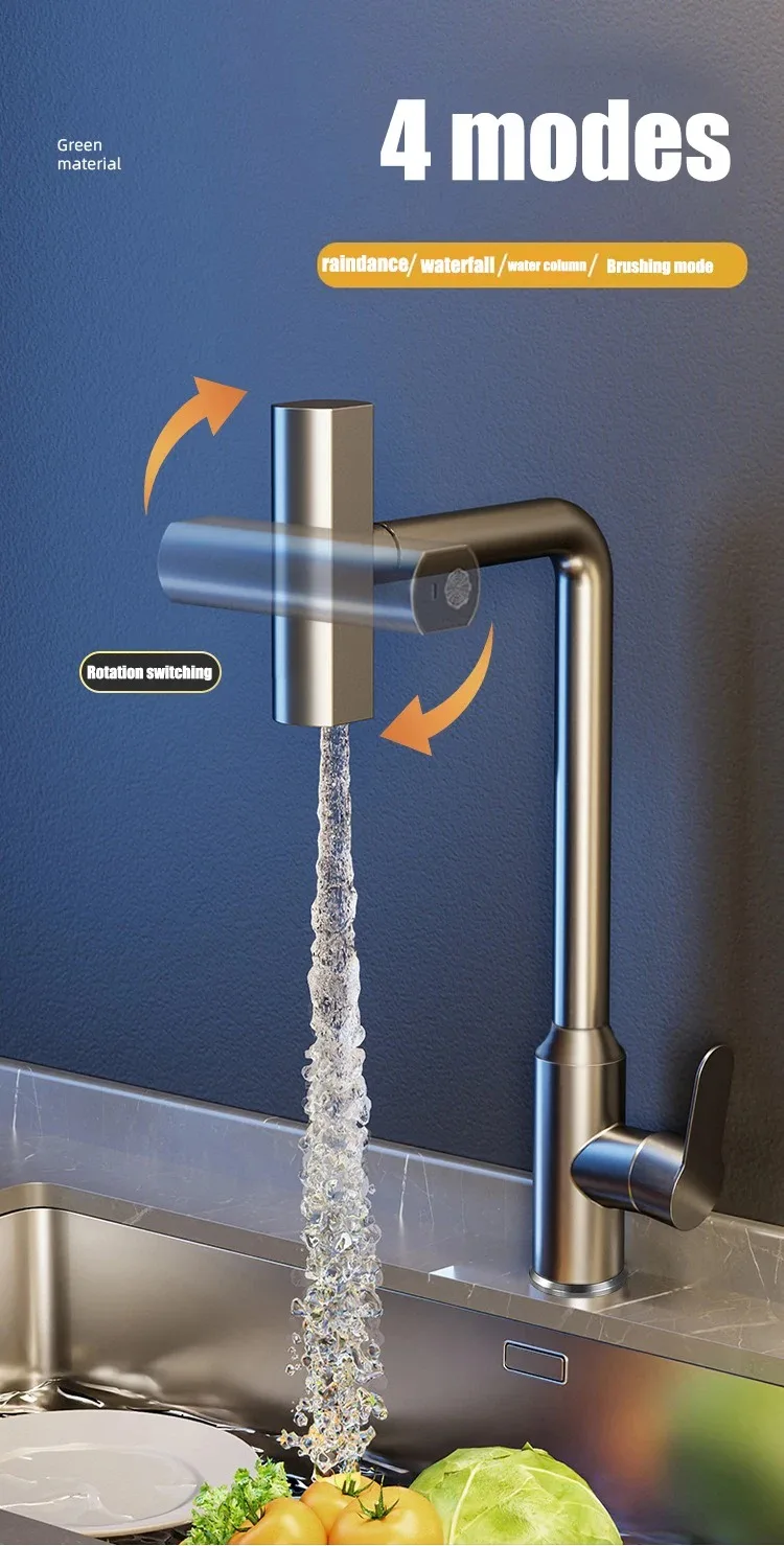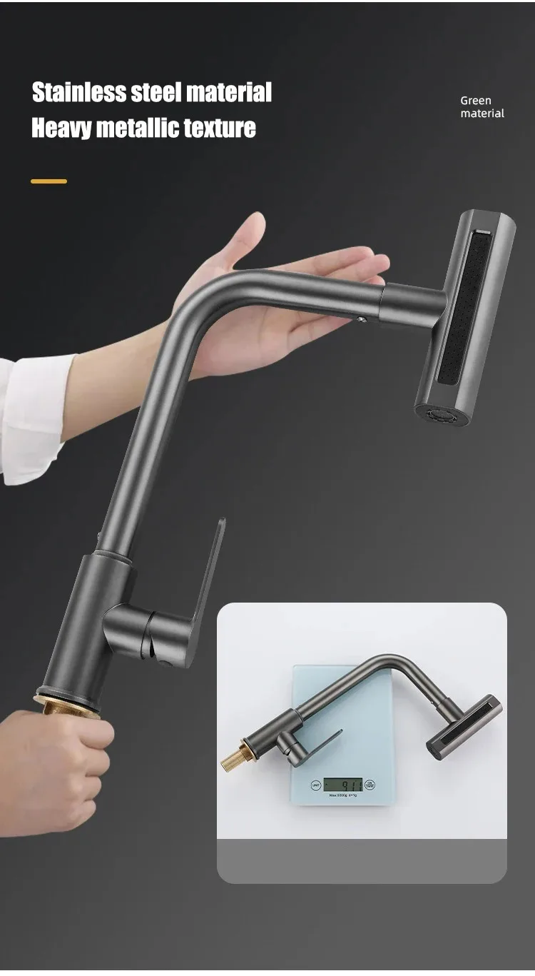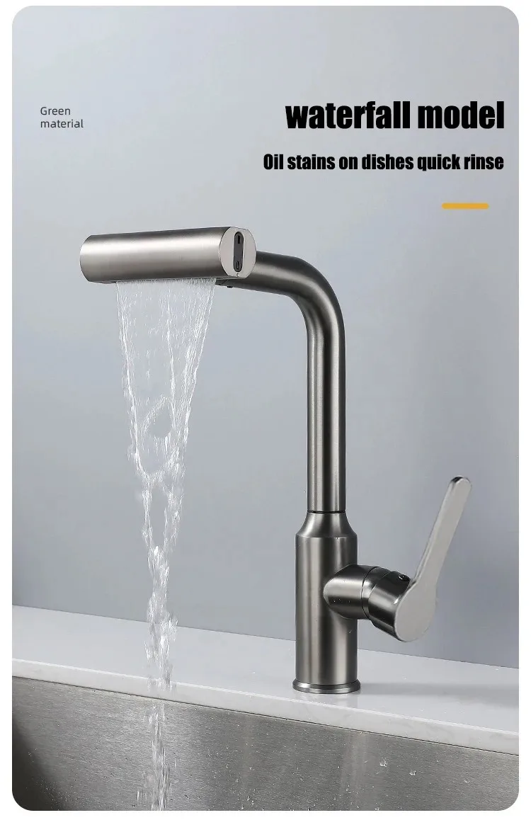 Grifo extraíble de cascada de lluvia de acero inoxidable, cocina, hogar caliente y frío, a prueba de salpicaduras, 2 en 1, grifo de agua para lavar platos
