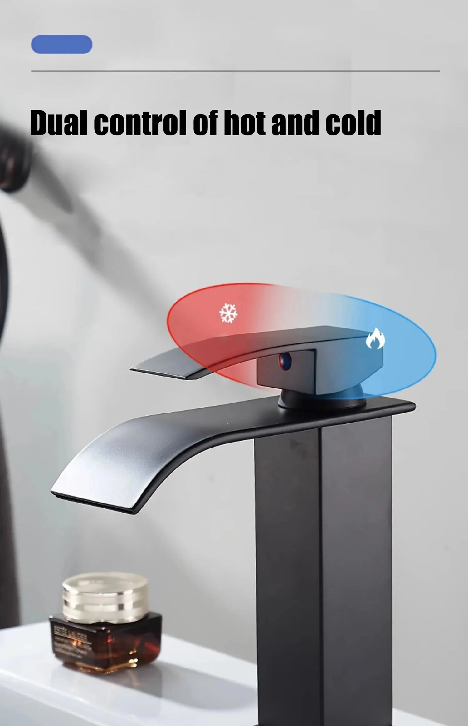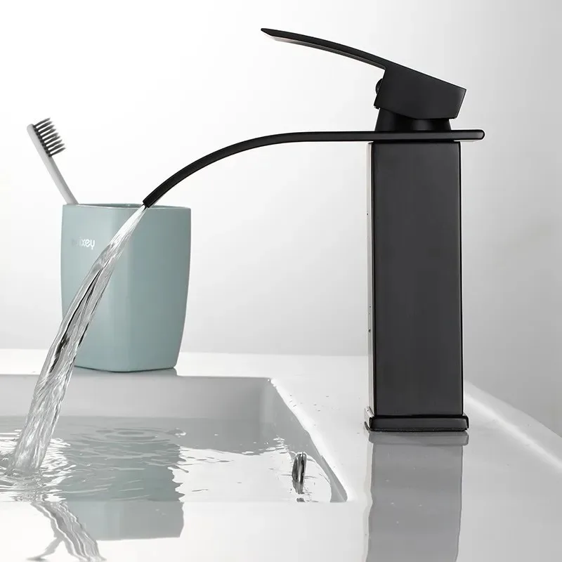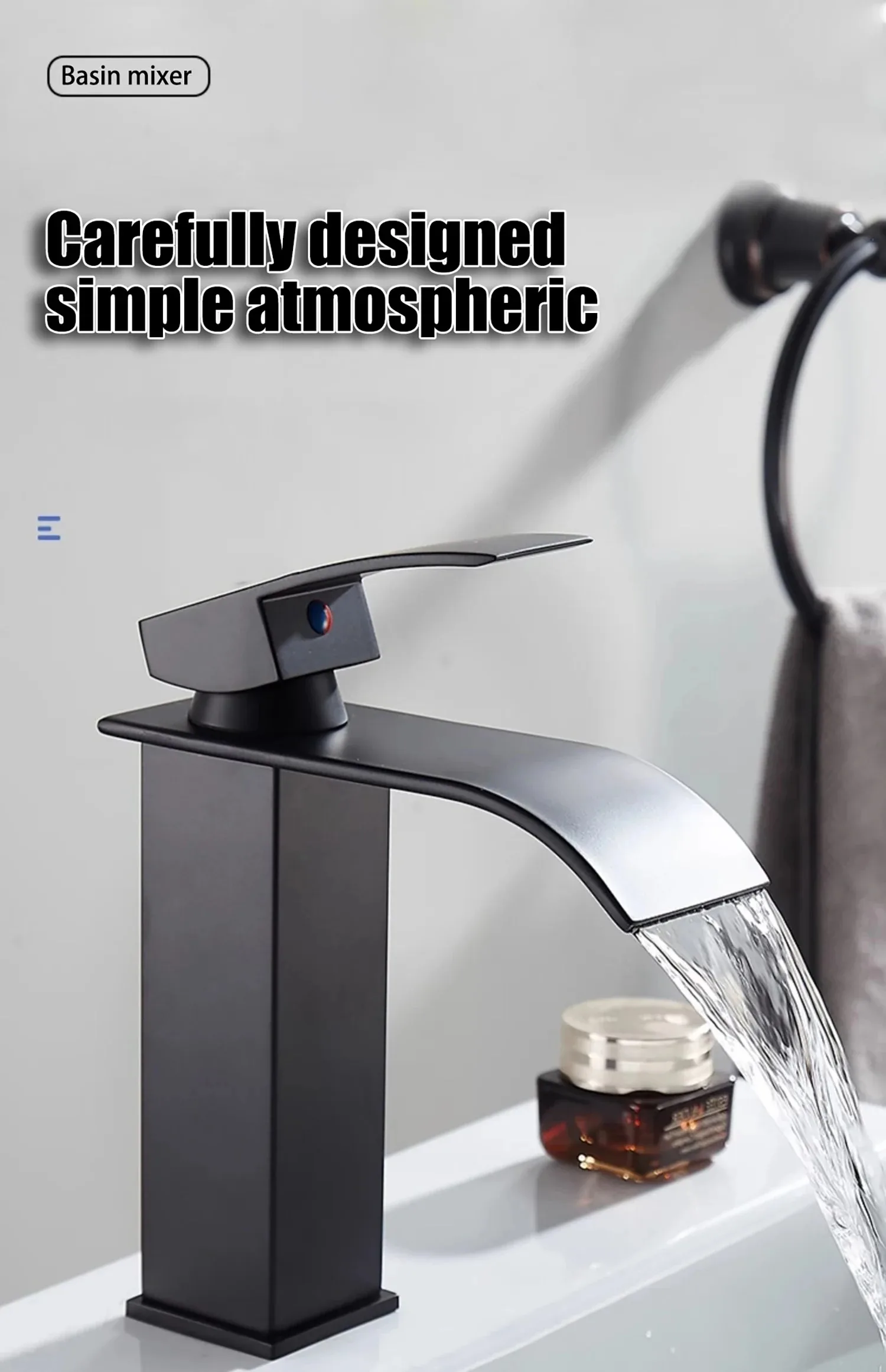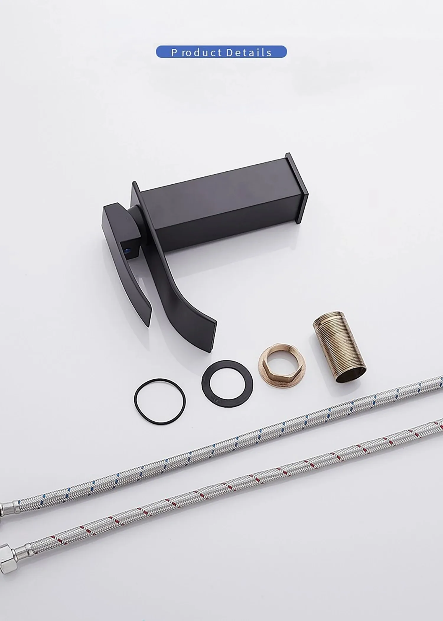Grifo de lavabo de Estilo Cascada, negro, caliente y frío, todo de cobre, para baño, cocina, uso doméstico