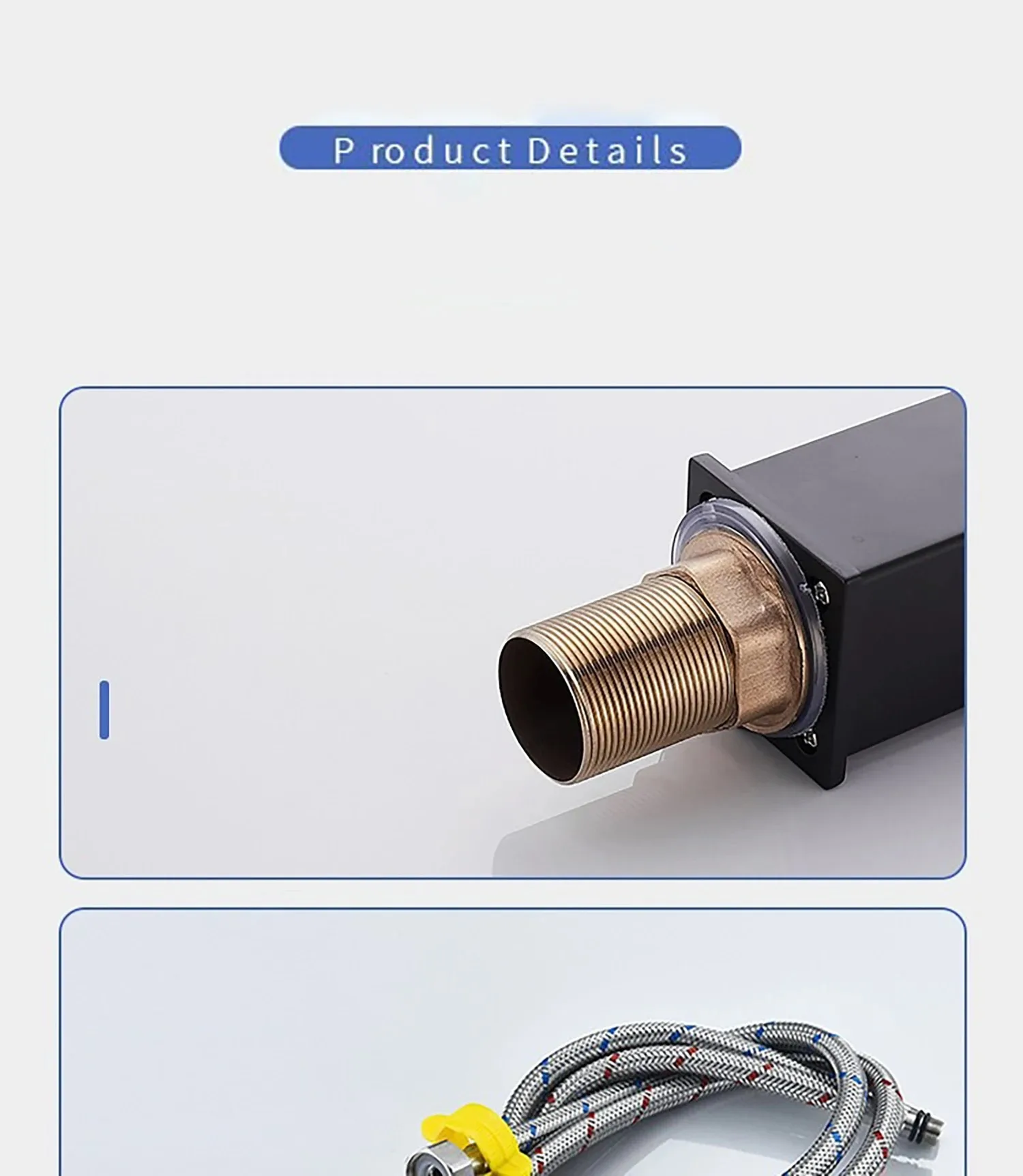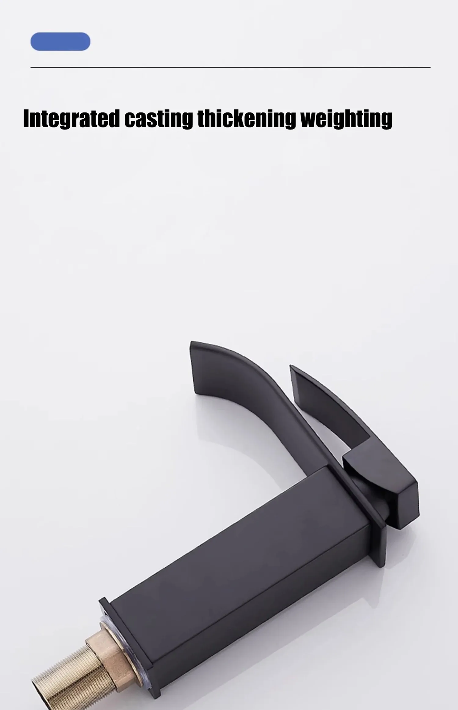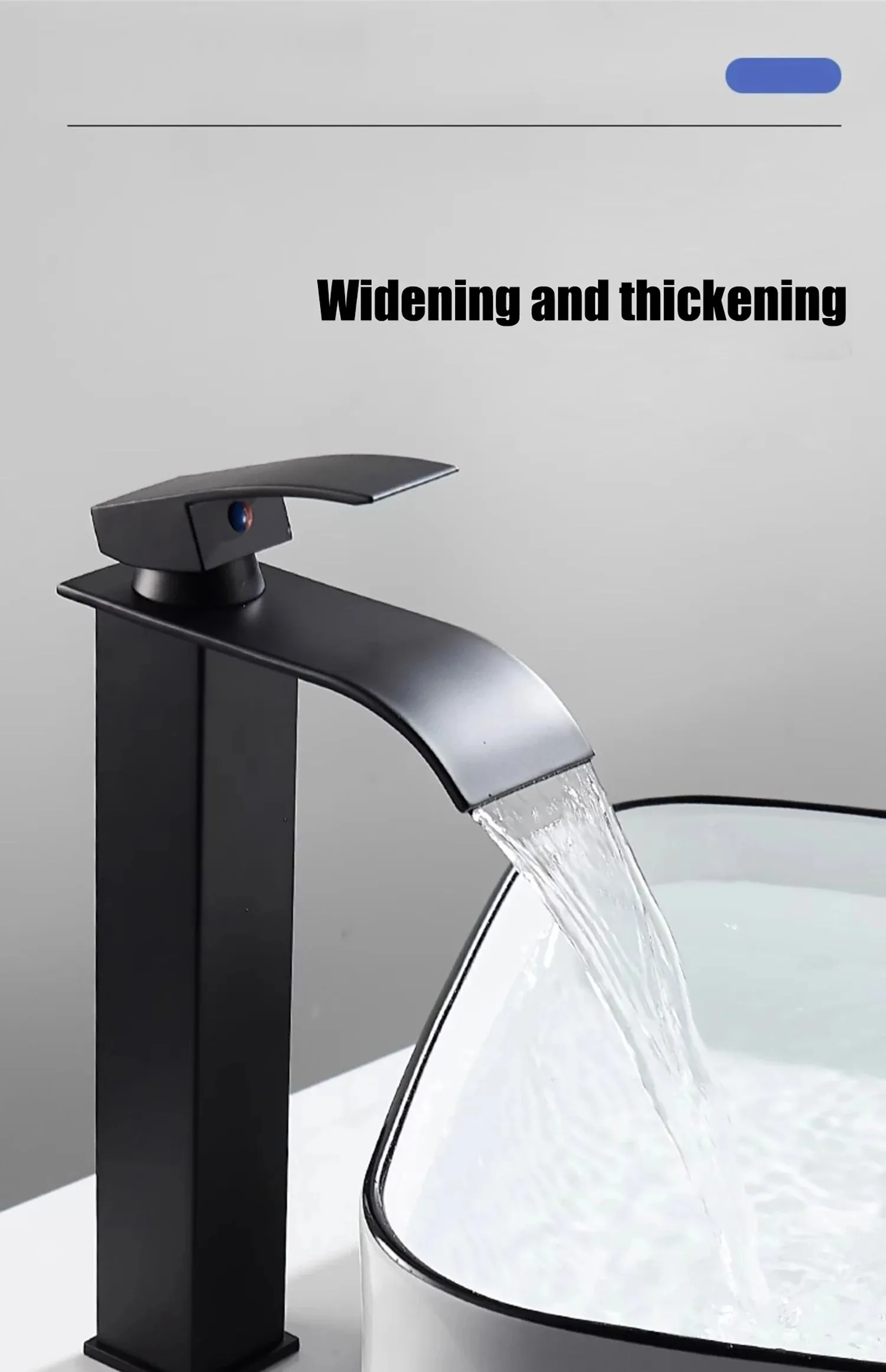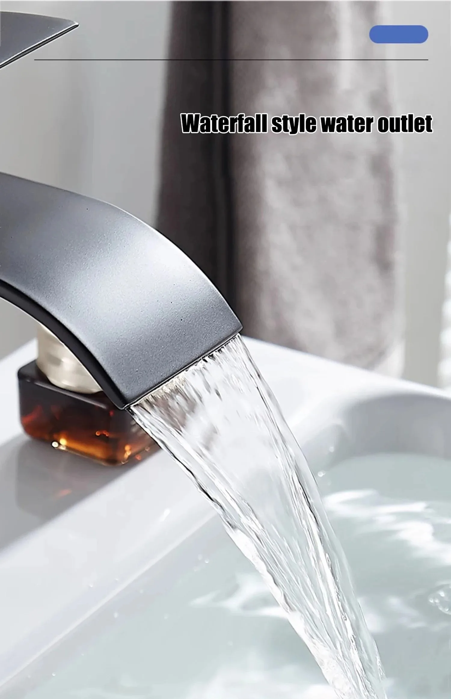 Grifo de lavabo de Estilo Cascada, negro, caliente y frío, todo de cobre, para baño, cocina, uso doméstico