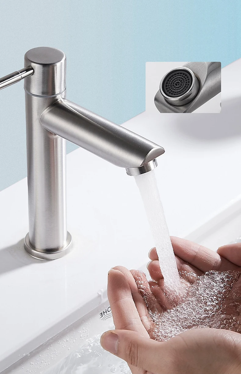 Grifo de un solo frío, grifo de lavabo de acero inoxidable 304 de alta gama, lavabo de encimera de baño
