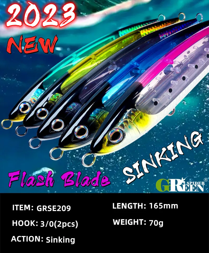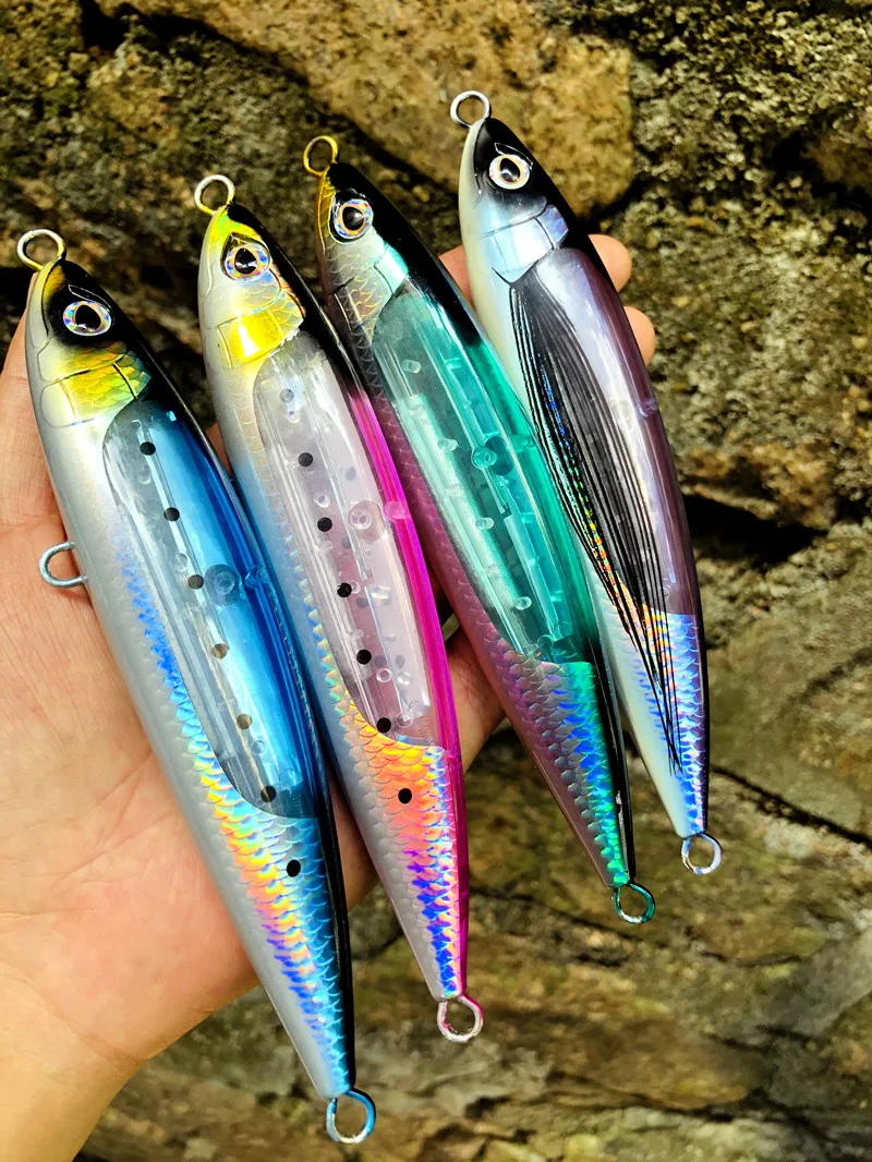 GRS nuevo señuelo de pesca de mar Stickbait señuelo tipo lápiz agua superior 165mm 70g GT pesca palo de agua salada cebo Artificial hoja de Flash