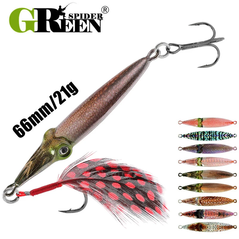 GRS-Plantilla de pesca de calamar de Metal, señuelo Jigbait Chapado en plata, señuelos de fundición a tierra, cebo de Metal, señuelos artificiales, gancho de pluma, 66mm, 21g