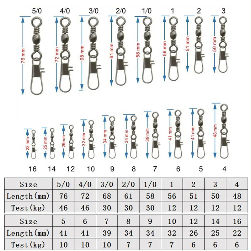 Embalaje: 50 Uds./20 Uds./10 Uds. Material: aleación de cobre Tamaño: #16-#5/0 Los eslabones giratorios de pesca son una de las piezas más comunes de los equipos de pesca. Se utilizan para evitar que el sedal se tuerza, que es una de las principales razones del sedal que se enreda o se endeble. Los eslabones giratorios también se utilizan para unir dos piezas de sedal, o para sujetar un líder a un sedal, etc. Nota: 1: desde el motivo de la luz, hay algunos colores diferentes en los productos reales. ¡Gracias por su comprensión! 2: Hay algunos errores en la medición manual. ¡Por favor comprenda! 3: Para pedidos especiales, envíenos un mensaje antes de realizar el pedido, gracias.