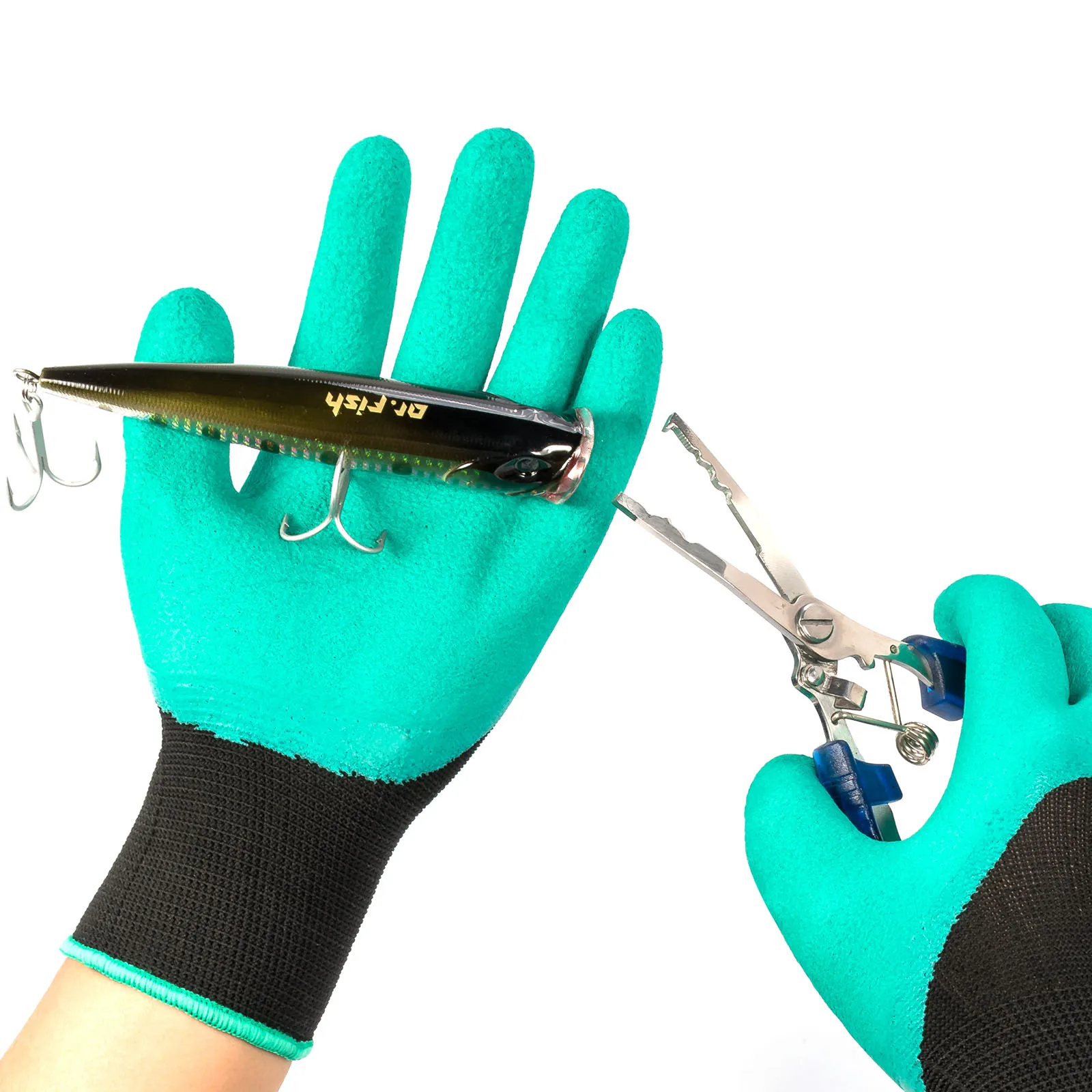 【Material duradero】: Estos guantes de pesca están hechos de látex de alta densidad más un revestimiento protector. Impermeable, resistente a los pinchazos y fácil de limpiar, protege tus manos de los cortes.