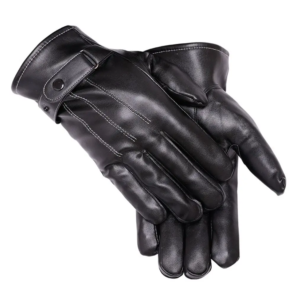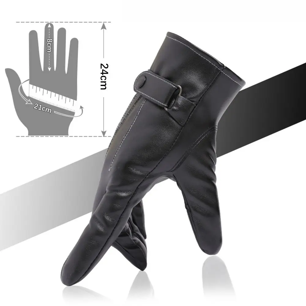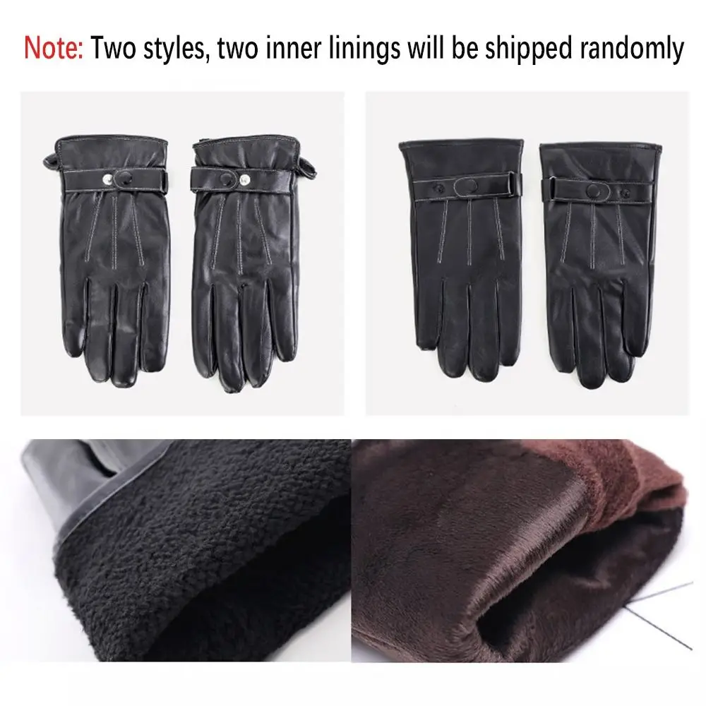 Los guantes de dedo completo son un equipo muy importante para los ciclistas y trabajadores de oficina que necesitan montar en invierno. Tiene un cierto grado de resistencia al viento y calidez, que puede resistir bajas temperaturas y brindar calor durante los deportes al aire libre. Toque la pantalla con los dedos, puede responder llamadas, enviar y recibir mensajes de texto sin quitarse los guantes. Diseño de hebilla de muñeca, el tamaño se puede ajustar libremente, se ajusta a la muñeca a prueba de viento y no restringe la mano. Guantes cálidos para montar, andar en bicicleta, conducir, táctico, tiro, correr, esquiar, senderismo y otras actividades al aire libre en climas fríos. Especificación: Material: cuero PU Color: negro Tamaño: como se muestra Nota: dos estilos, se enviarán dos forros interiores al azar Paquete incluido: un par * guantes de cuero PU