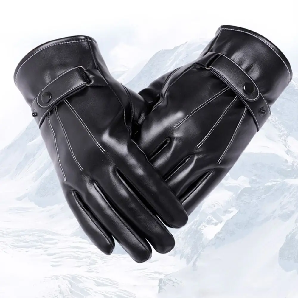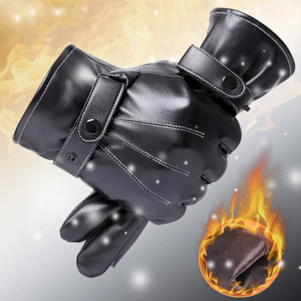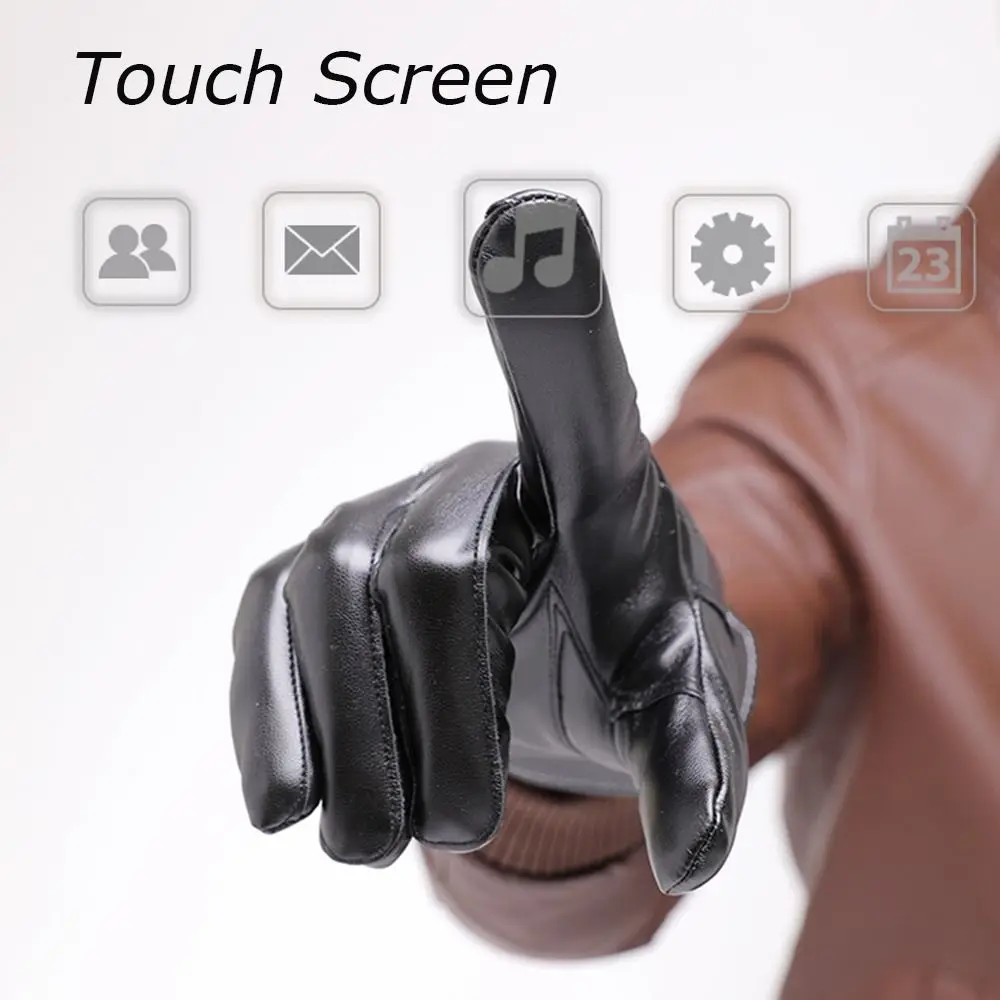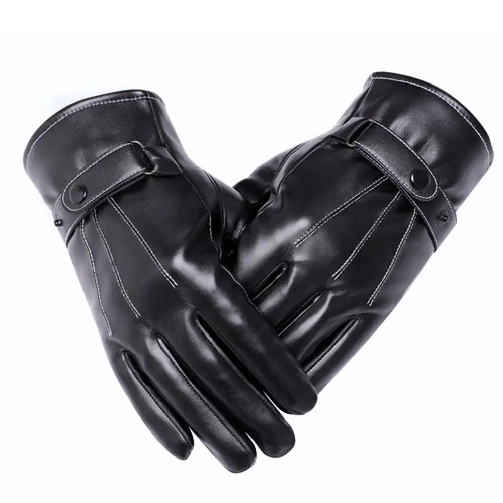 Los guantes de dedo completo son un equipo muy importante para los ciclistas y trabajadores de oficina que necesitan montar en invierno. Tiene un cierto grado de resistencia al viento y calidez, que puede resistir bajas temperaturas y brindar calor durante los deportes al aire libre. Toque la pantalla con los dedos, puede responder llamadas, enviar y recibir mensajes de texto sin quitarse los guantes. Diseño de hebilla de muñeca, el tamaño se puede ajustar libremente, se ajusta a la muñeca a prueba de viento y no restringe la mano. Guantes cálidos para montar, andar en bicicleta, conducir, táctico, tiro, correr, esquiar, senderismo y otras actividades al aire libre en climas fríos. Especificación: Material: cuero PU Color: negro Tamaño: como se muestra Nota: dos estilos, se enviarán dos forros interiores al azar Paquete incluido: un par * guantes de cuero PU