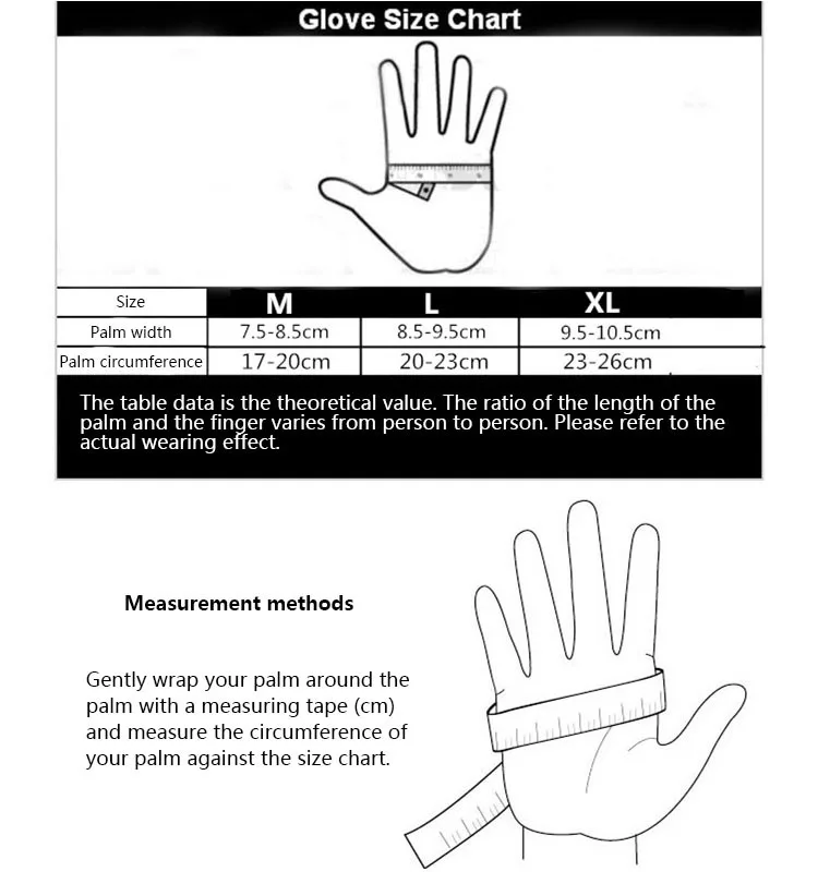 Tamaño: M (ancho de la palma 7,5-8,5 CM) L (8,5-9,5 CM) XL (9,5-10,5 CM)