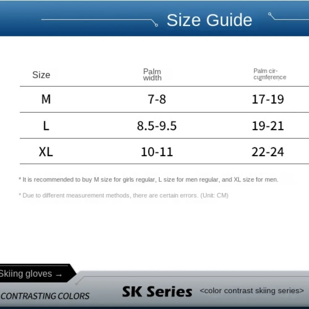 Producto: Guantes de esquí Material: PU + terciopelo Estilo: 8 Tamaño: sk34 L, sk32 tamaño libre Peso: aproximadamente 165g Paquete: 1 par de guantes de esquí Notas: 1. Permita un error de 0-1 pulgada debido a la medición manual. Gracias por su comprensión. 2. Los monitores no están calibrados de la misma manera, el color del artículo que se muestra en las fotos puede ser ligeramente diferente del objeto real.