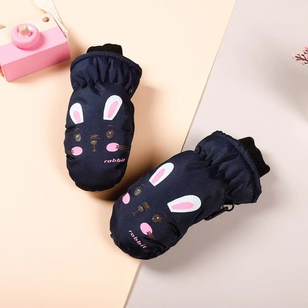 El paquete incluye: 1 par de guantes de esquí para niños Lindos guantes cálidos para niños de conejo de dibujos animados estampados.