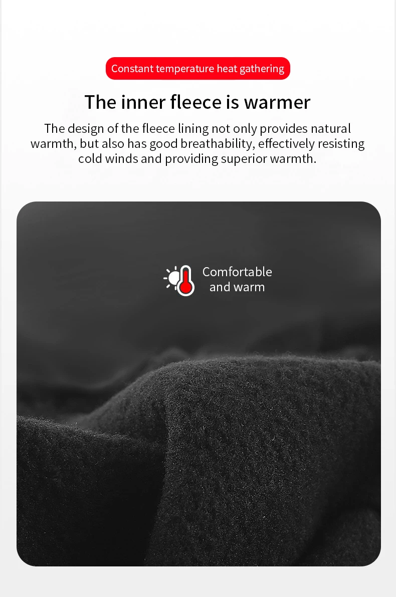 Hecho de un compuesto de tejidos resistentes al viento, excelente retención de calor.