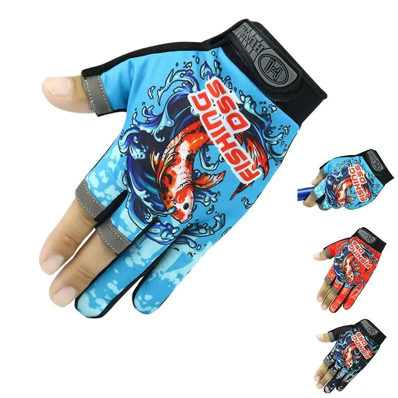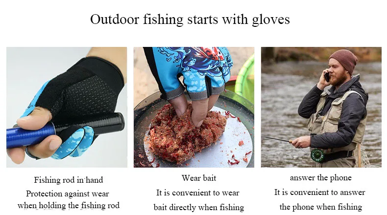 Guantes de pesca para hombre y mujer, protección de pesca al aire libre, antideslizantes, 3 dedos cortados, equipo deportivo para peces, guantes de pesca