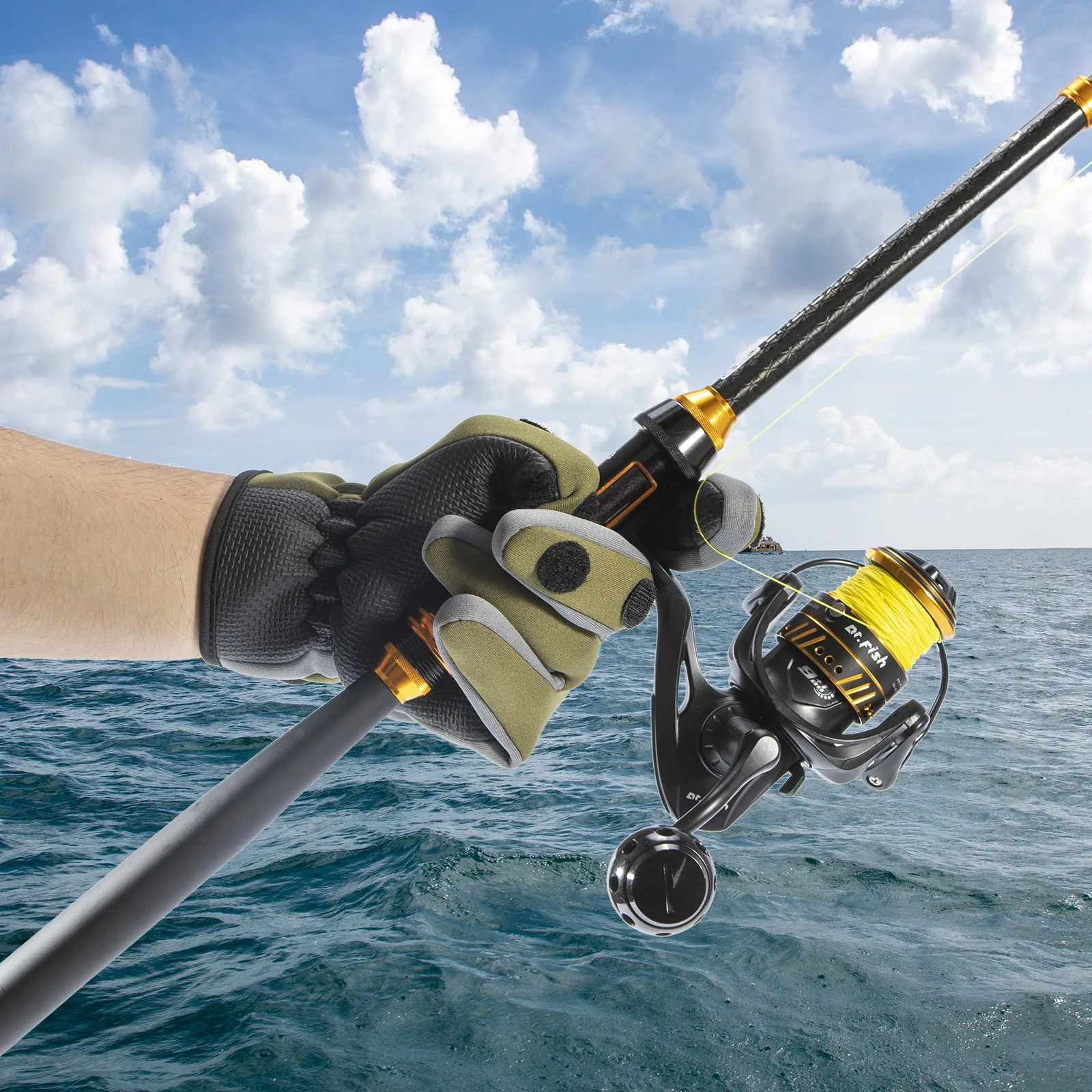 1.Tela impermeable: confeccionada con tela impermeable de alta calidad para mantener las manos secas mientras pesca en condiciones de humedad.Las correas adhesivas en la muñeca y el dorso de la mano le permiten ajustar y asegurar fácilmente el guante para dedos.
