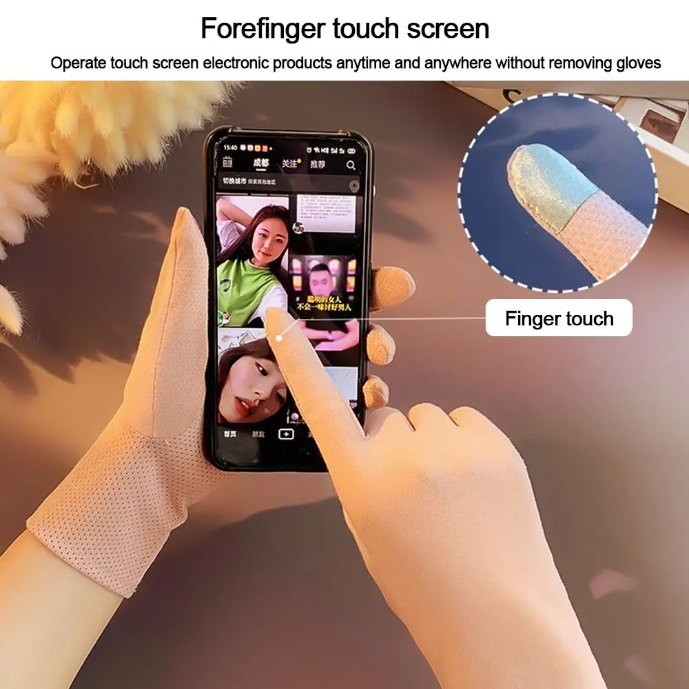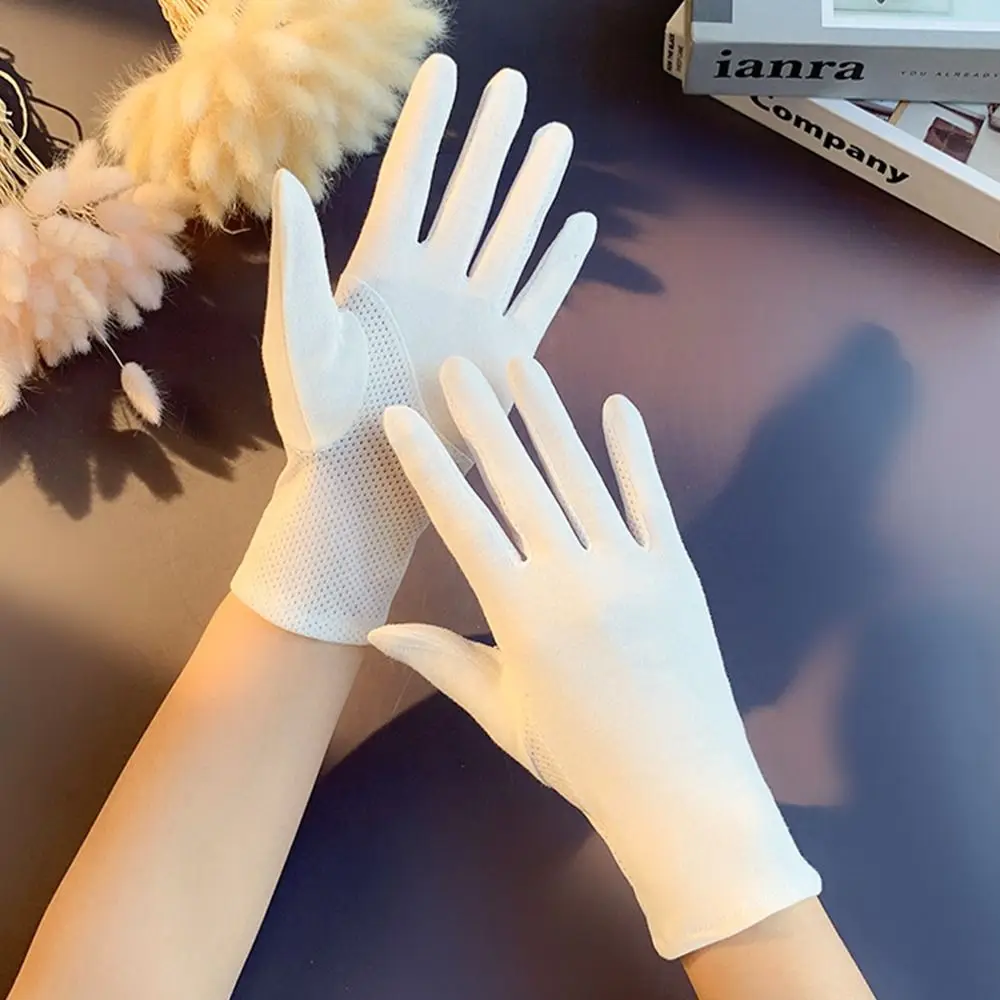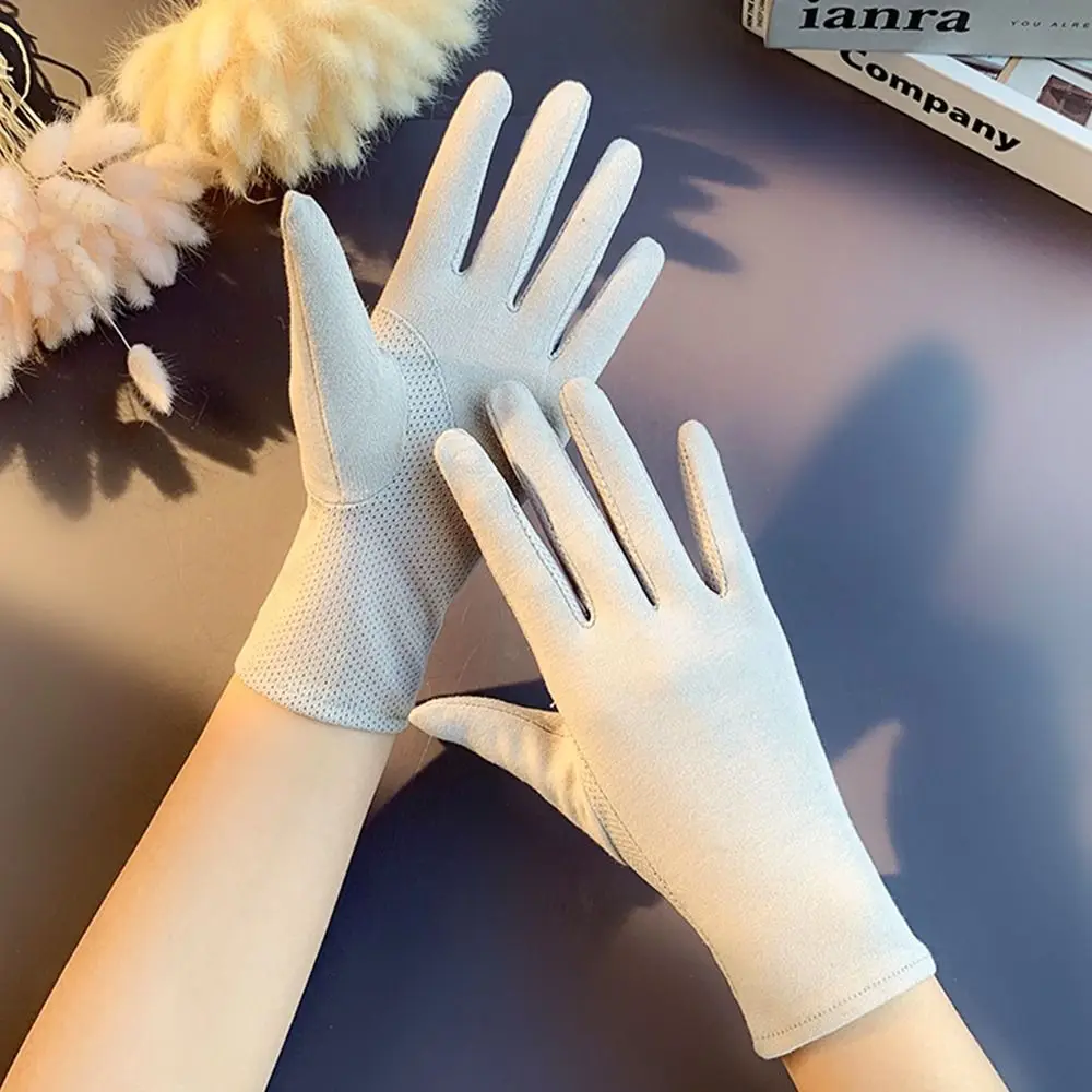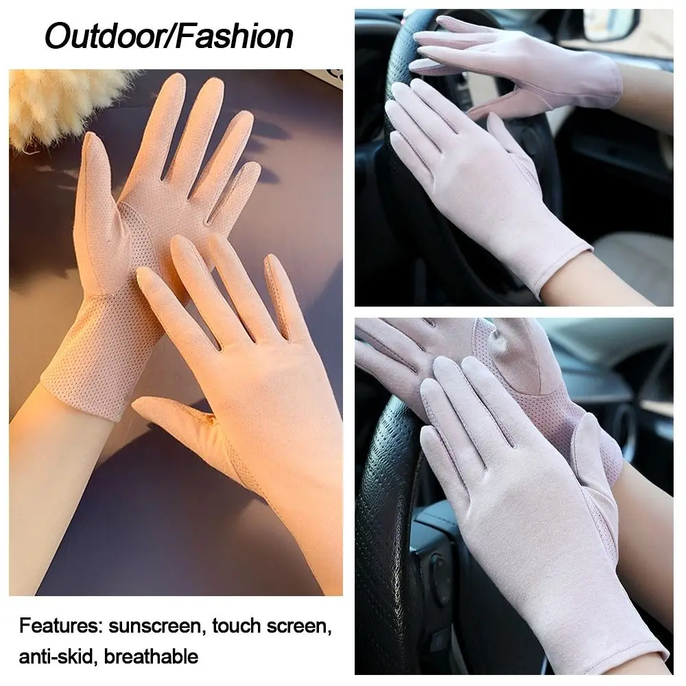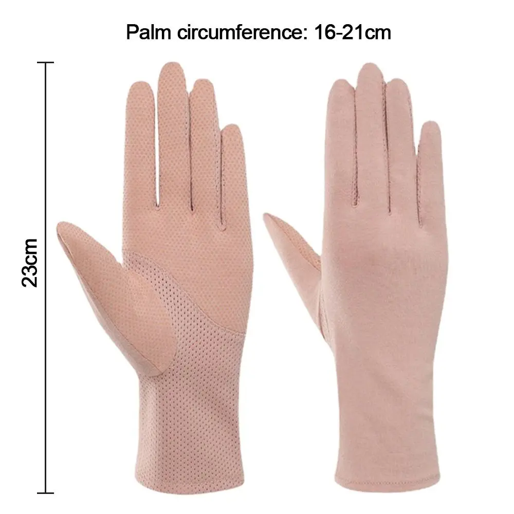 Nuevo y de alta calidad Tipo de artículo: guantes Material: algodón Género: mujer Color: como se muestra Longitud: 23cm; Circunferencia de La Palma: 16-21cm Características: protector solar, pantalla táctil, antideslizante Adecuado para: Rinding, pesca, escalada, conducción, etc. El paquete incluye: 1 par de guantes