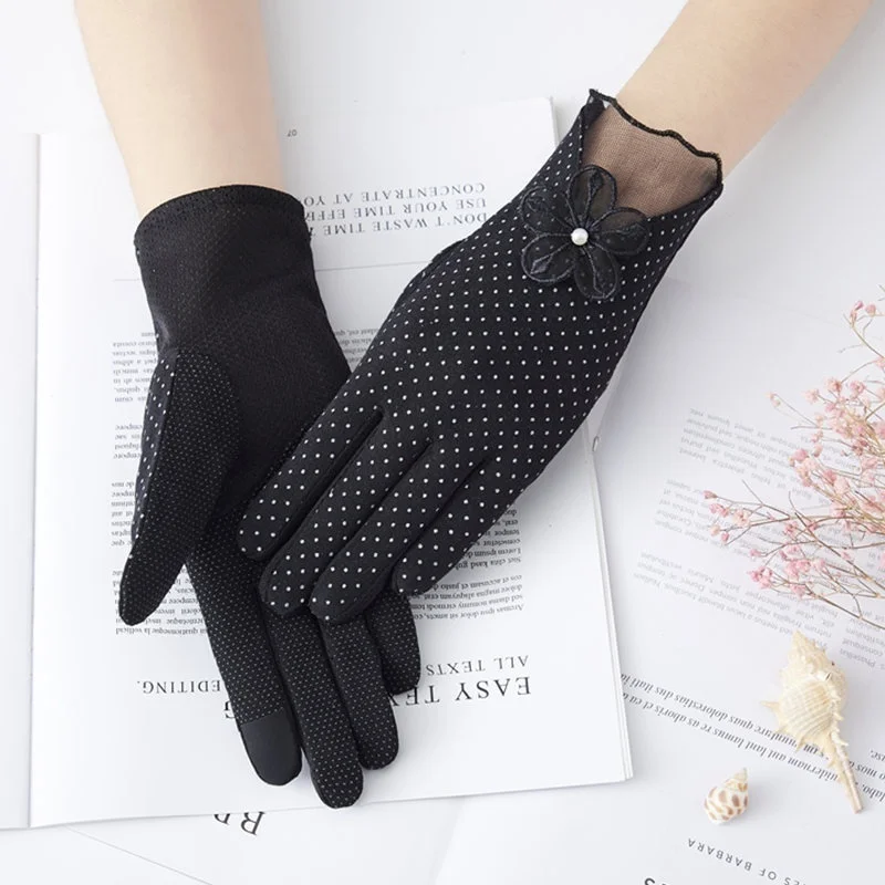 Guantes de protección solar elásticos con protección UV pura para mujer, guantes finos de verano antideslizantes con pantalla táctil, guantes cortos de algodón, accesorios para vestido