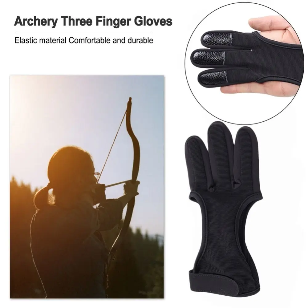 The Three-finger Archery Glove has a thick, non-skid cowhide pad at the tip to prevent pinching or discomfort.