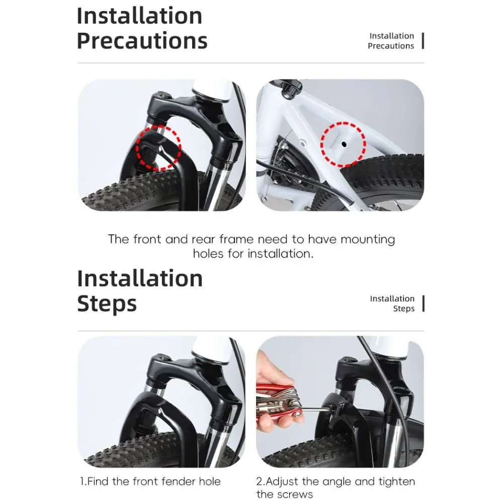 1. Our bike fender set is designed to fit road bikes, mountain bikes, and ebikes, offering ultimate protection from mud, dirt, and water. Stay clean and dry no matter where you ride.