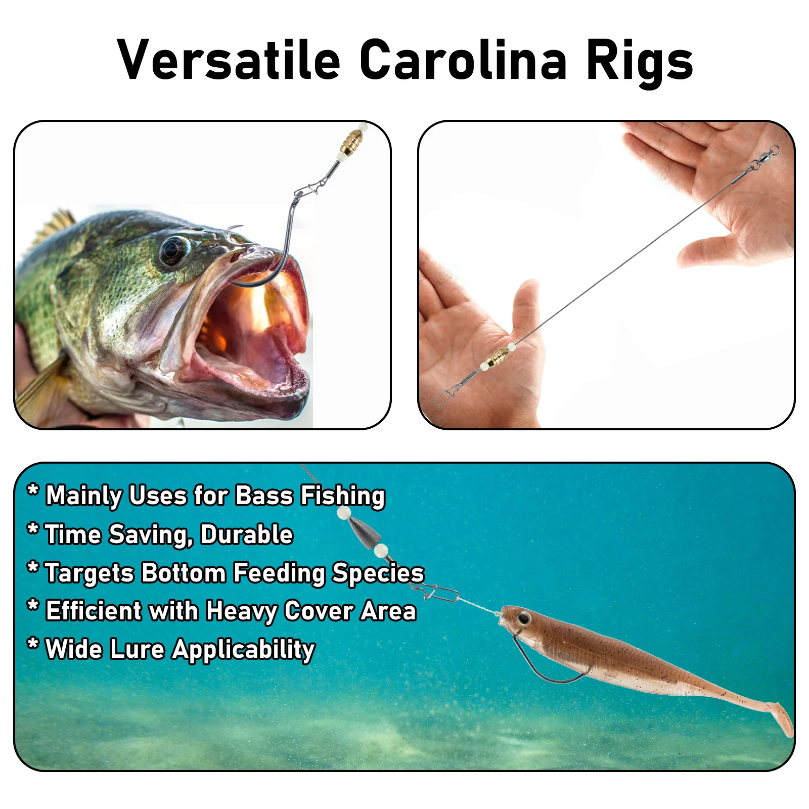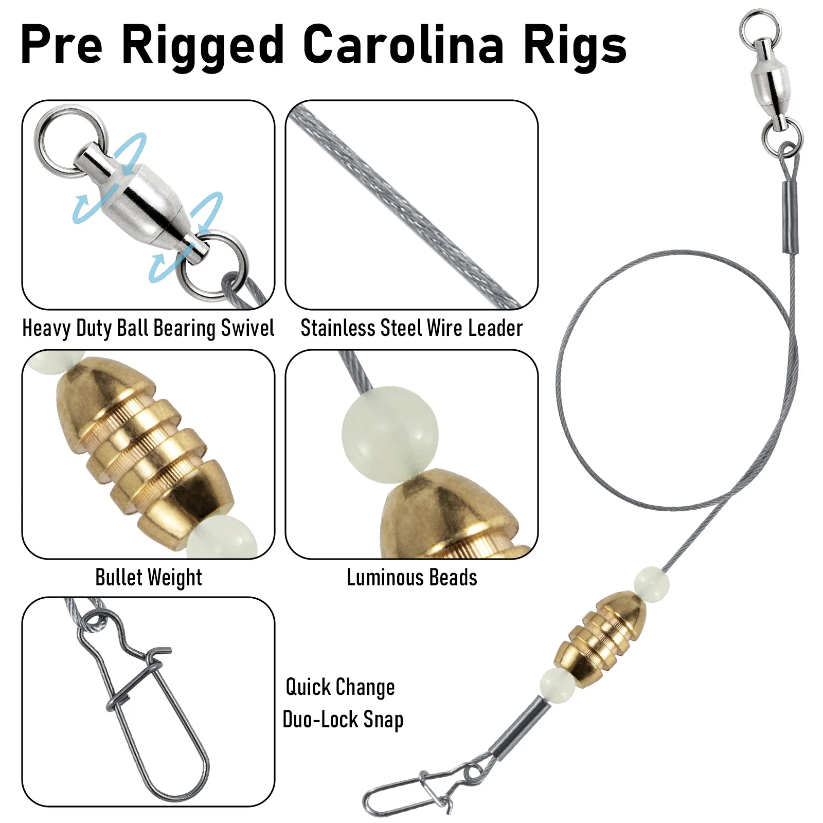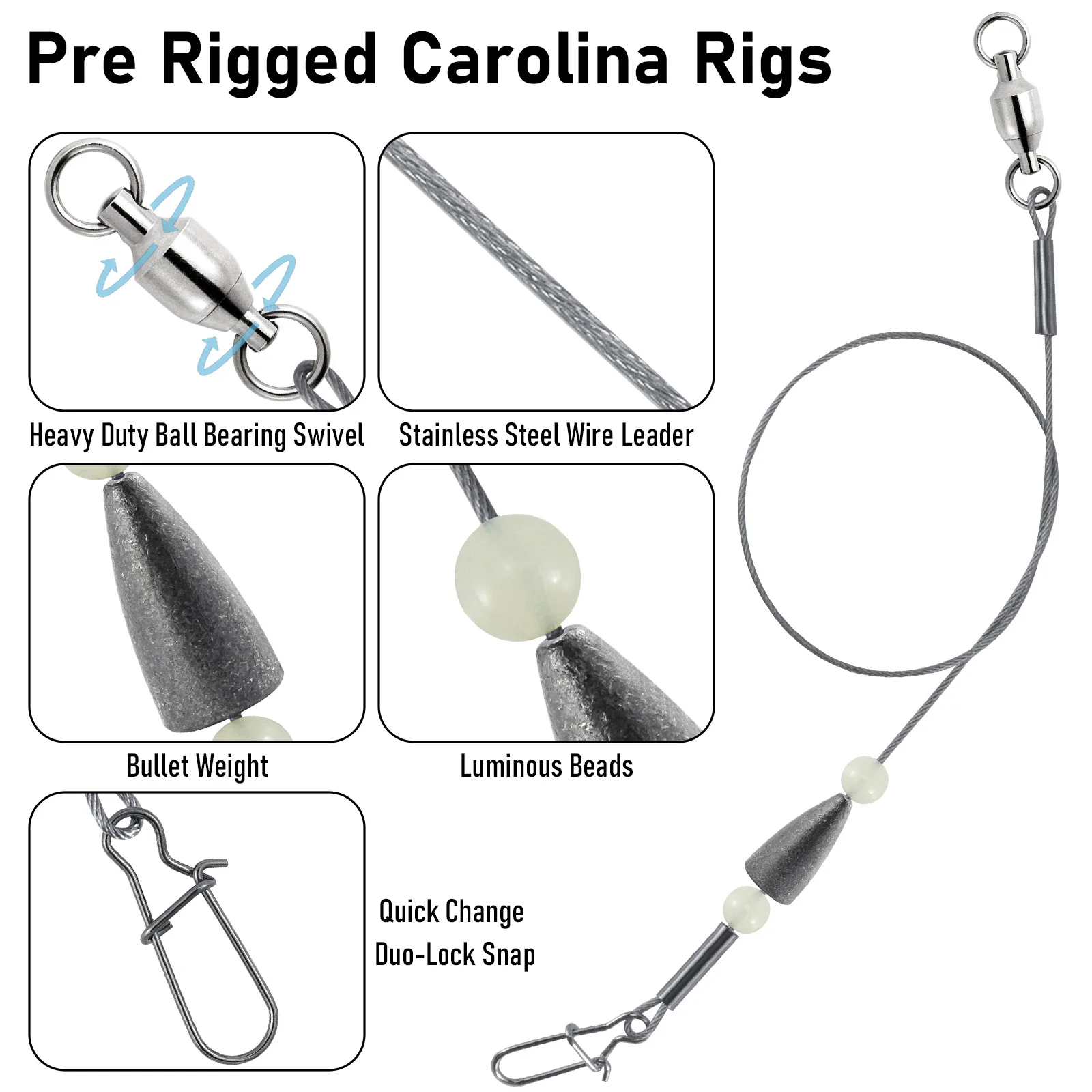 1. Aparejos Carolina premontados: Ahorre tiempo y atrape peces más grandes, cambios rápidos de señuelos y curricán efectivo en agua salada y agua dulce.